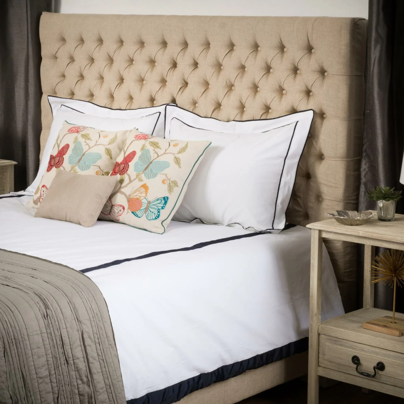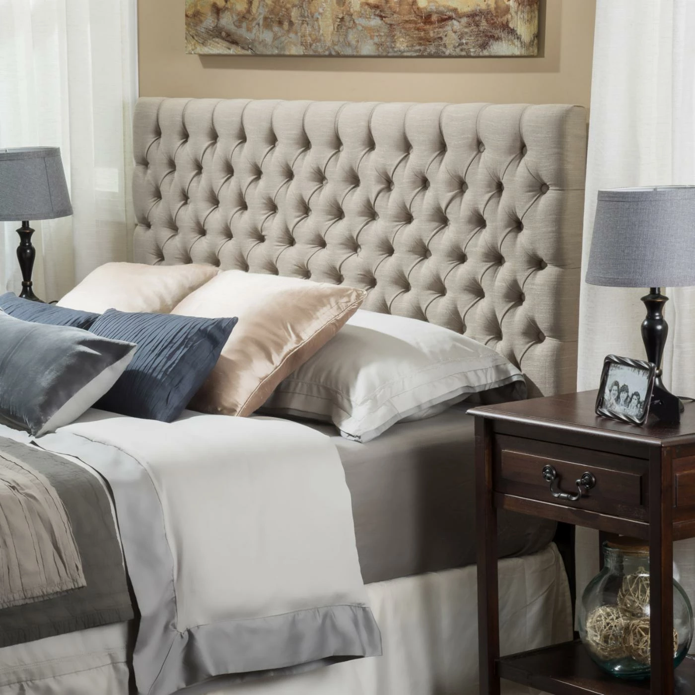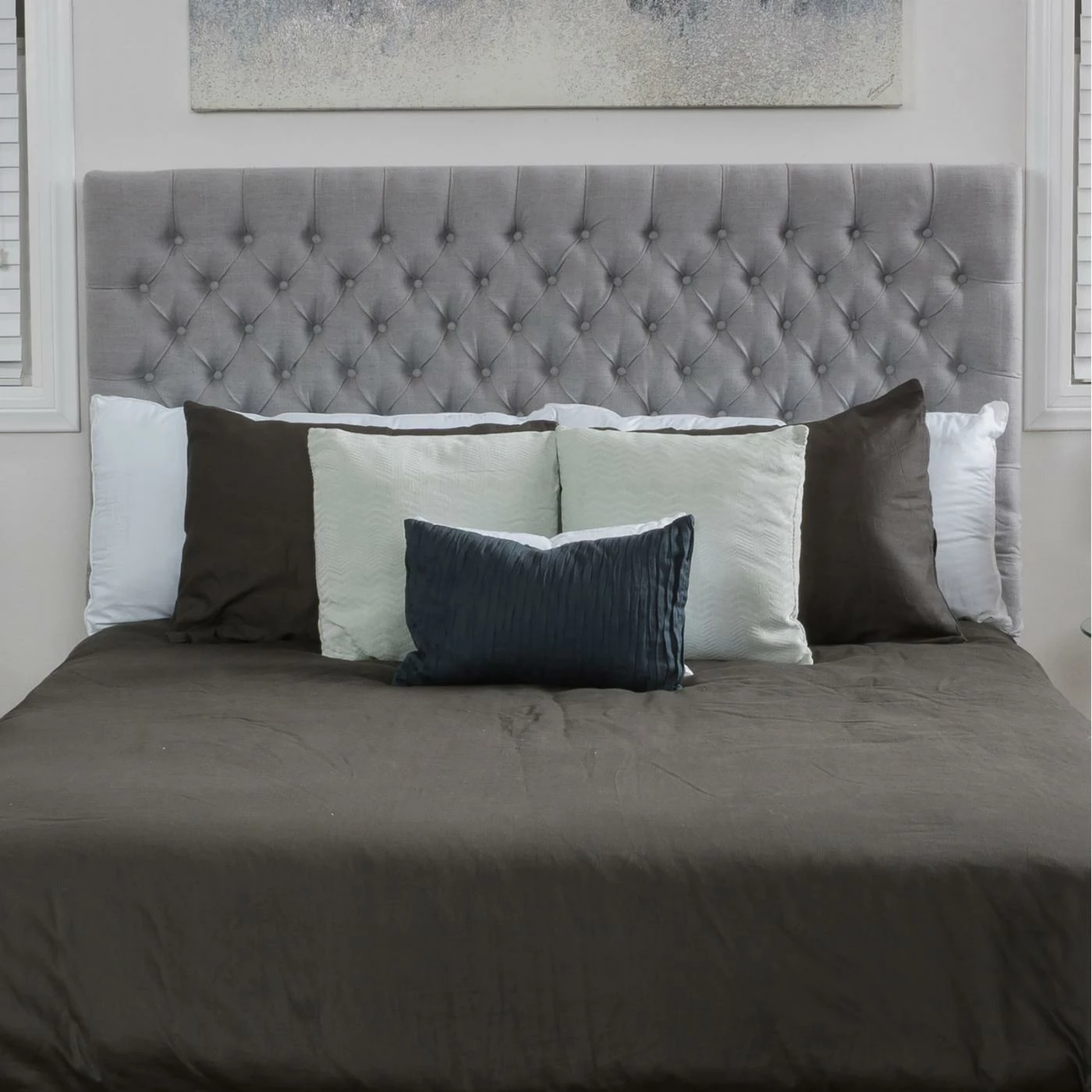Make any bed more luxurious by pairing it with the Hackmore Upholstered Headboard. Straight style lines and diamond tufting enhance the sophisticated look of this headboard. Choose the size and uphostery option that best suits your room.