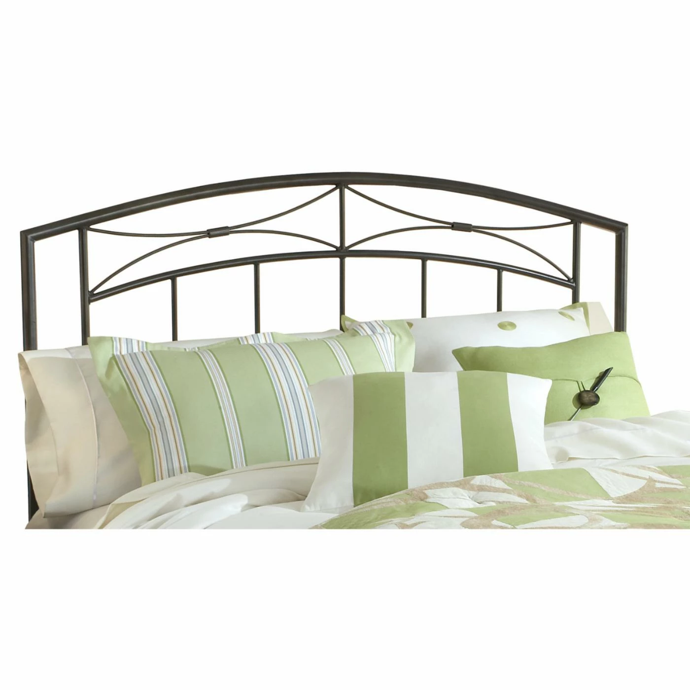 The Hillsdale Furniture Morris Headboard showcases the beauty of traditional design. The arched shape features straight spindles and a curved center detail. This sleek metal headboard is complete with a deep gray finish. Choose from available size options.