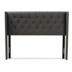 Outlet 🤩 Upholstered Headboards Baxton Studio Ally Fabric Button-Tufted Nailhead Winged Headboard 🧨