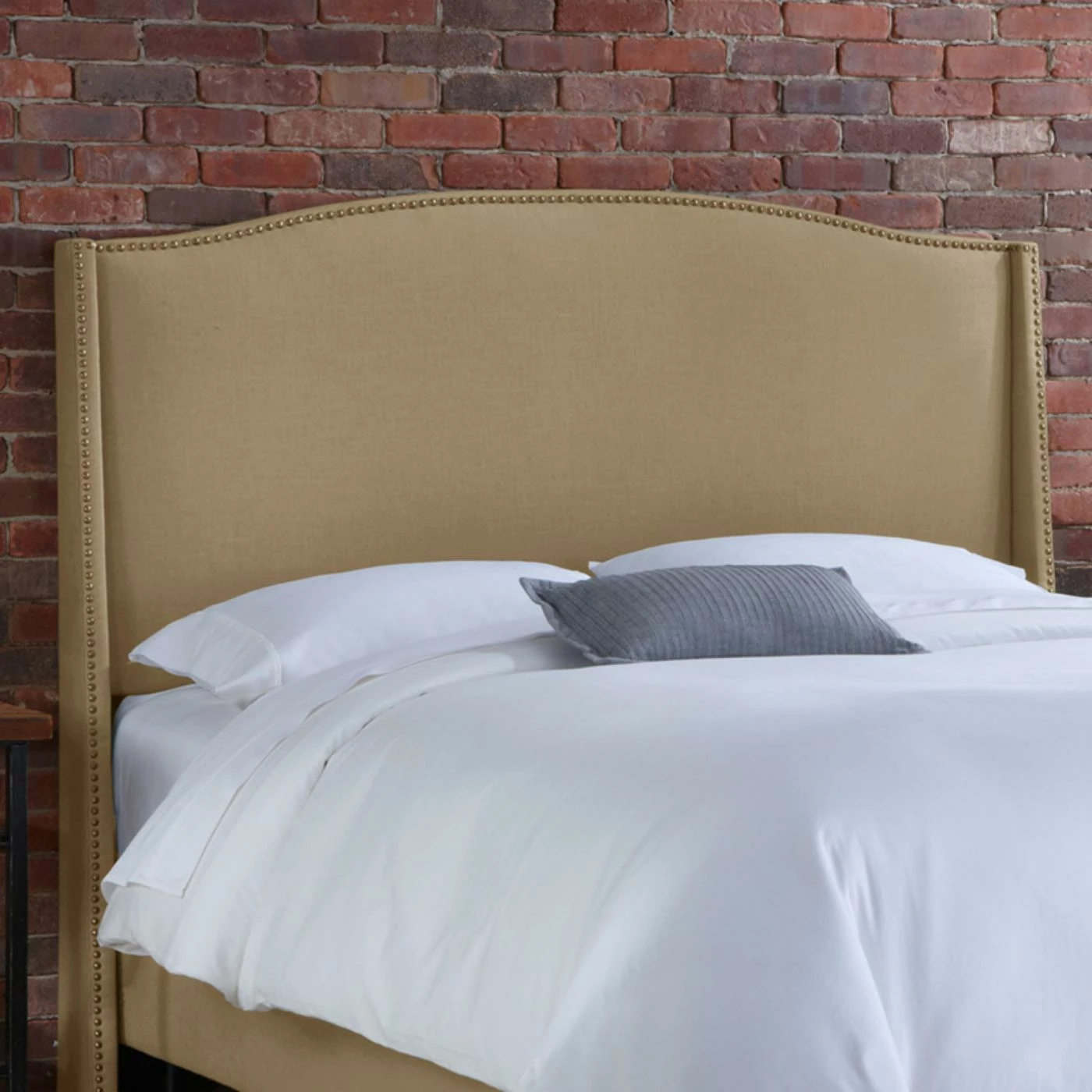 - Durable linen upholstery and nailhead trim