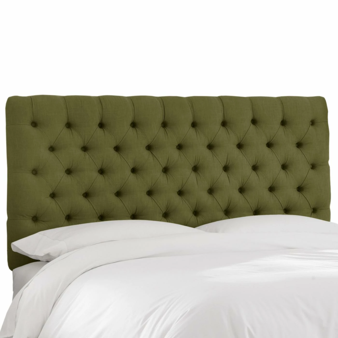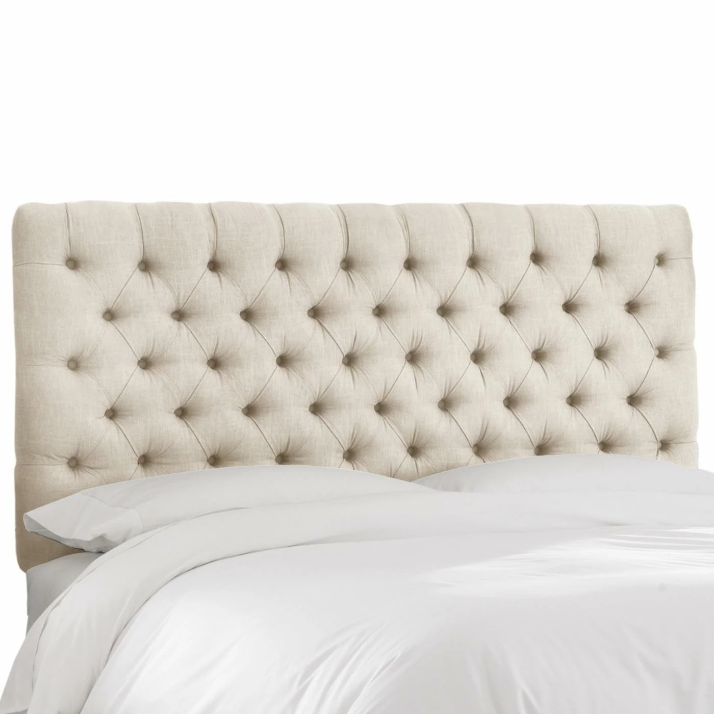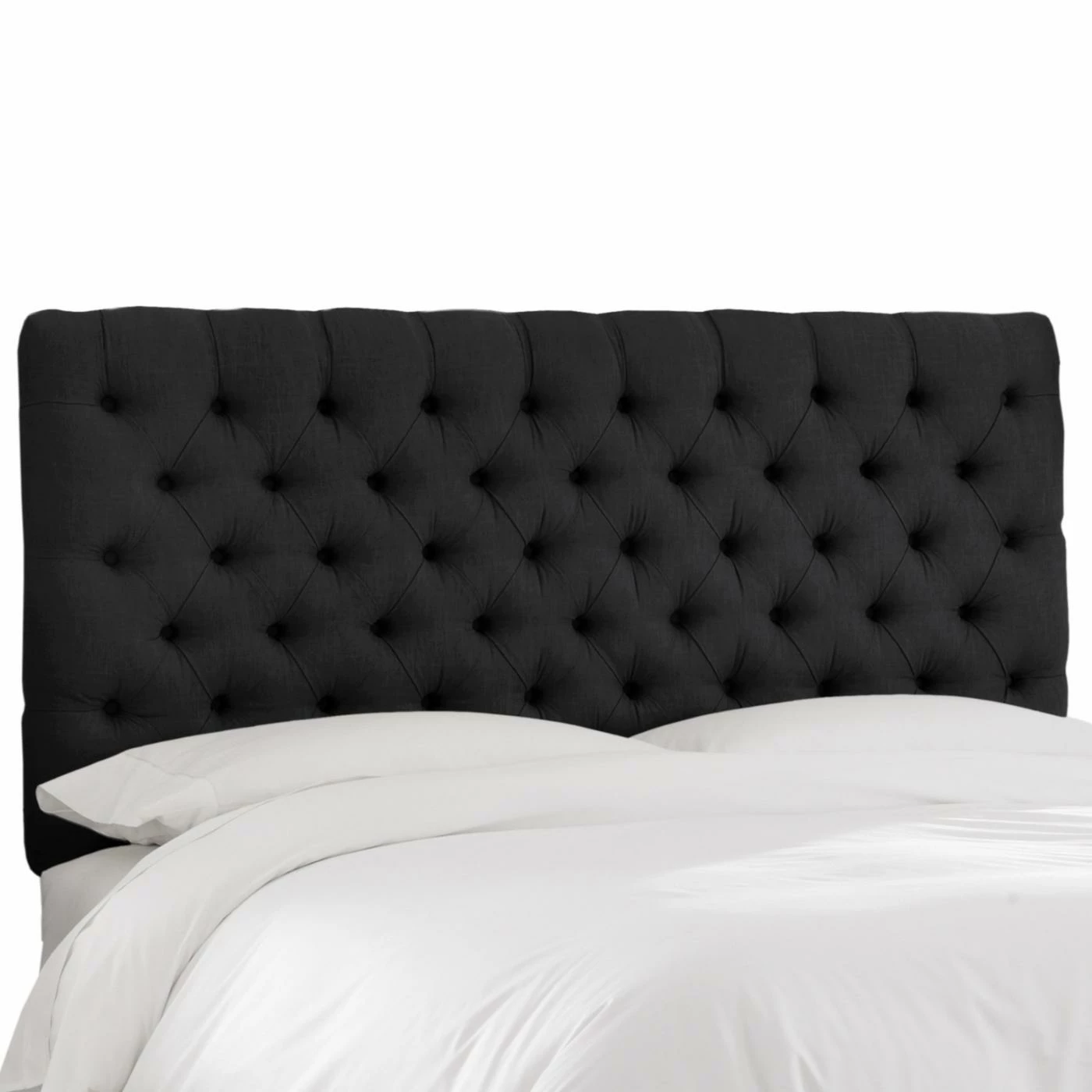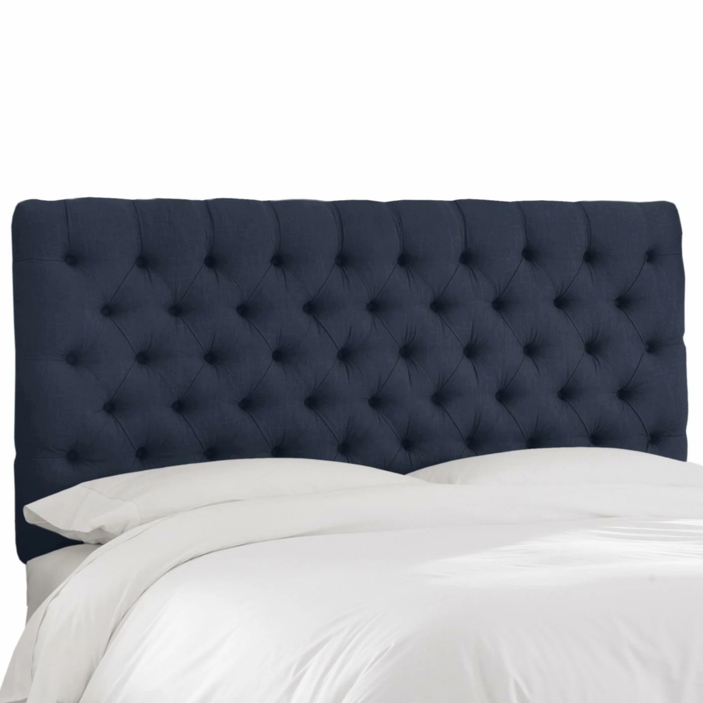 Usher in divine dreams with the Skyline Diamond Tufted Linen Upholstered Headboard. Simplicity rules this diamond tufted linen headboard, and you can customize by choosing from a full range of colors and sizes. Attain a designer look as you attach this headboard to any standard-sized bed frame with the included hardware kit and metal legs. Spot clean only. Crafted in the USA.