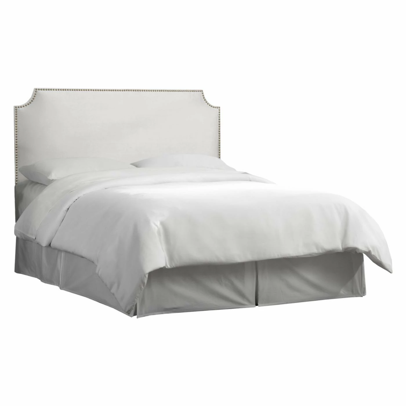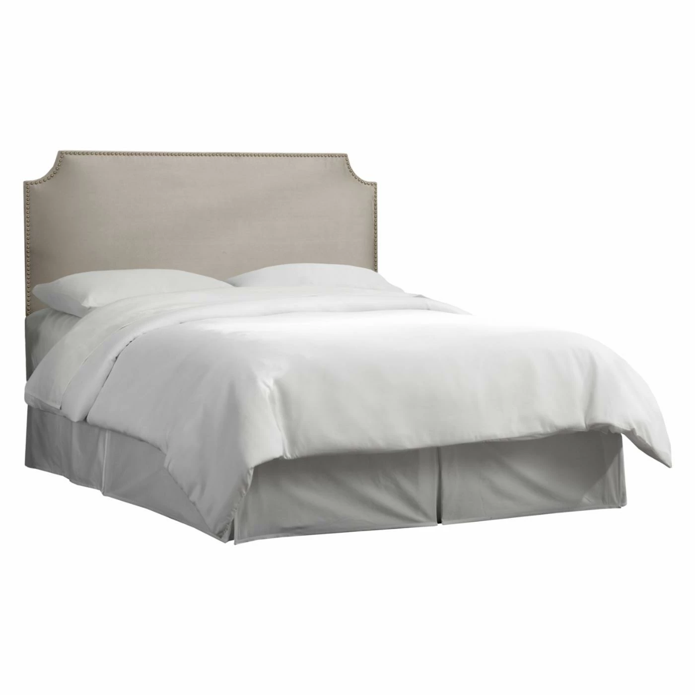 Seeing how simple is a lot easier than hard, you’d think that finding items with the simple elegance of the Skyline Notched Nailhead Upholstered Headboard wouldn’t be that hard. Well it’s not hard anymore, now that you’re here. This handsome headboard features a tall, hardwood frame with a few simple notches, pewter nailhead trim and a rich upholstery of blended linen. You can choose from the available color choices to accent your space, and select size options are available. This headboard is made in the USA and requires spot-cleaning only.
