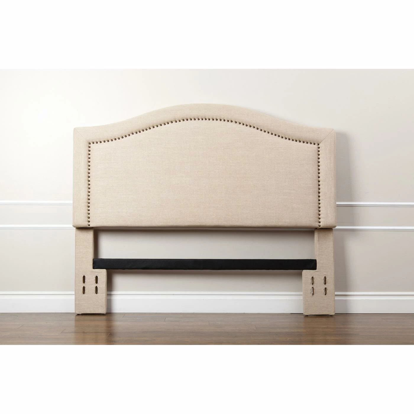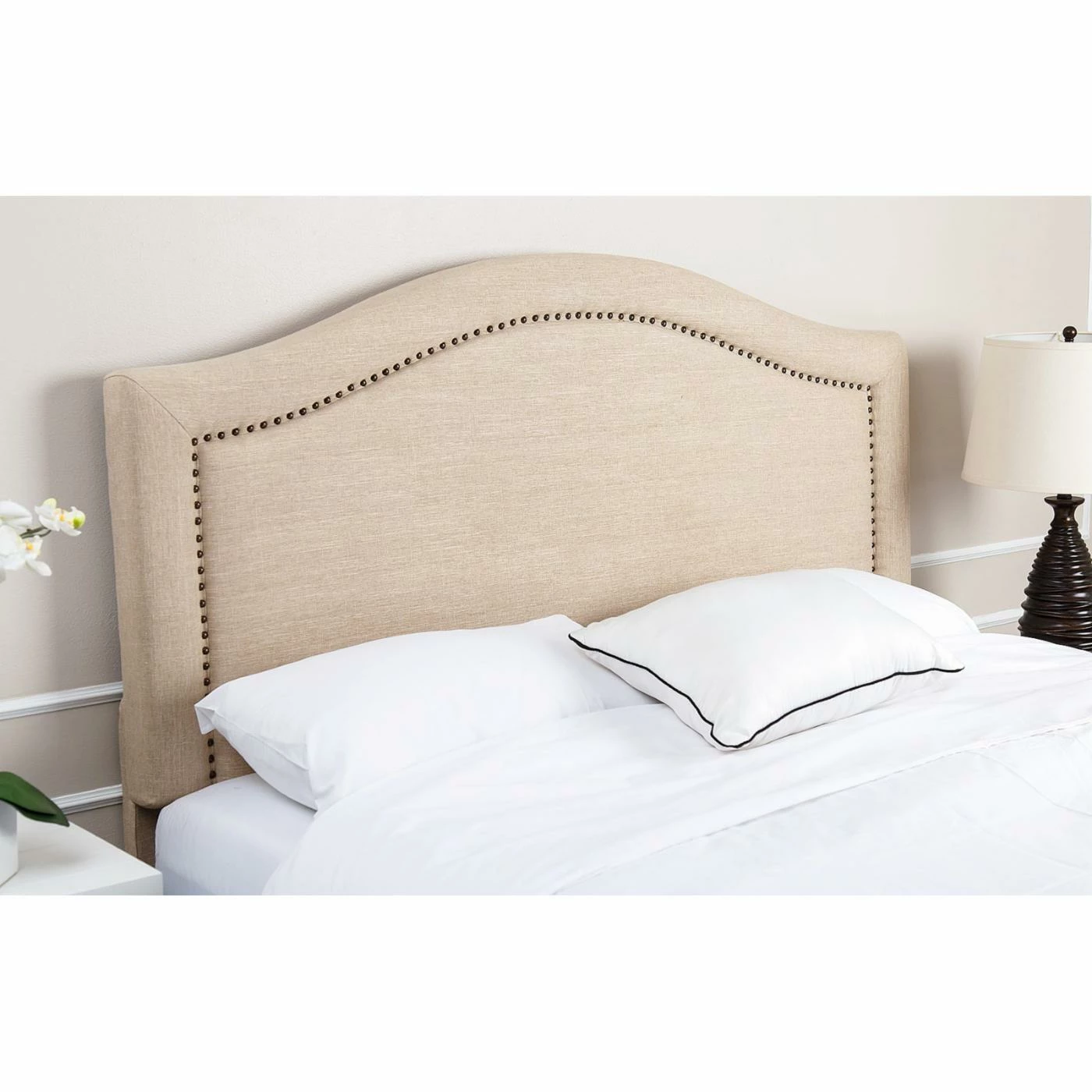 If you’re enamored with the texture of linen, keep it close while you sleep with the Abbyson Paxton Nail Head Wheat Linen Headboard. Appropriate for a master suite or guest room, this upholstered headboard is comfortable to lean against while reading or watching shows in bed. The neutral wheat hue is soothing and ties in with your dΓ©cor. Brass nail heads ring the arched shape. Choose an available size that works for your standard-sized bed frame.