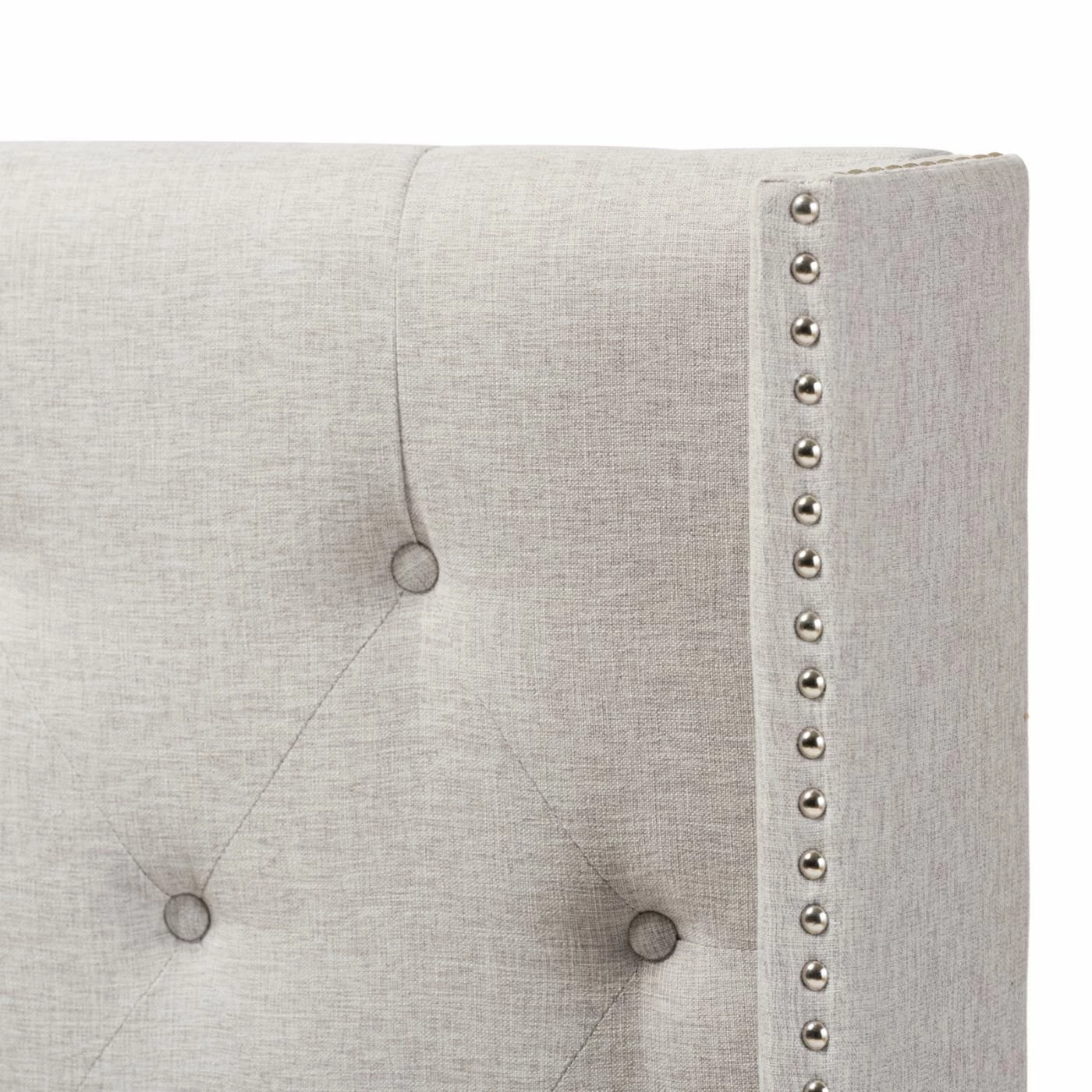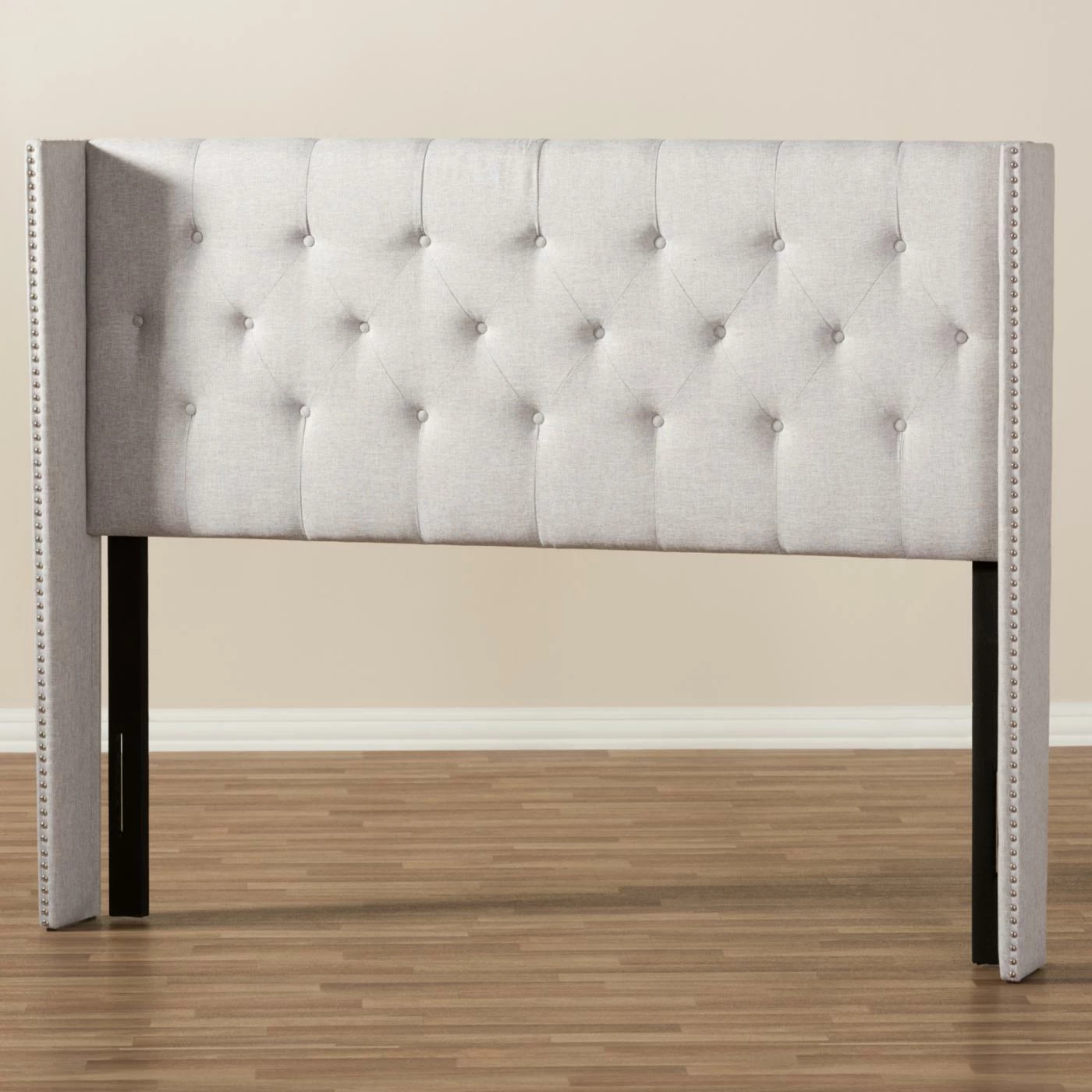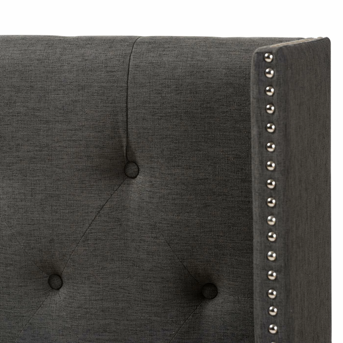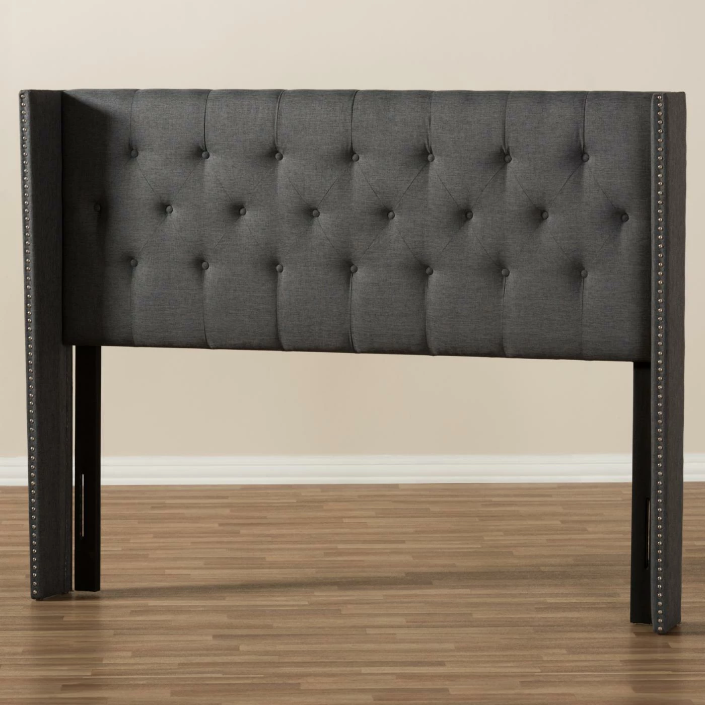 The Baxton Studio Ally Fabric Button-Tufted Nailhead Winged Headboard helps you quickly transform your bedroom into something a little bit more modern-day and elegant. This headboard boasts a classic wingback profile with sharp, contemporary line. Dense foam pads the frame, upholstered in high-quality polyester. Square buttons tuft the headboard’s face while the fronts of the wings are studded with bright polished nailheads. Choose your size and fabric color from the available options.