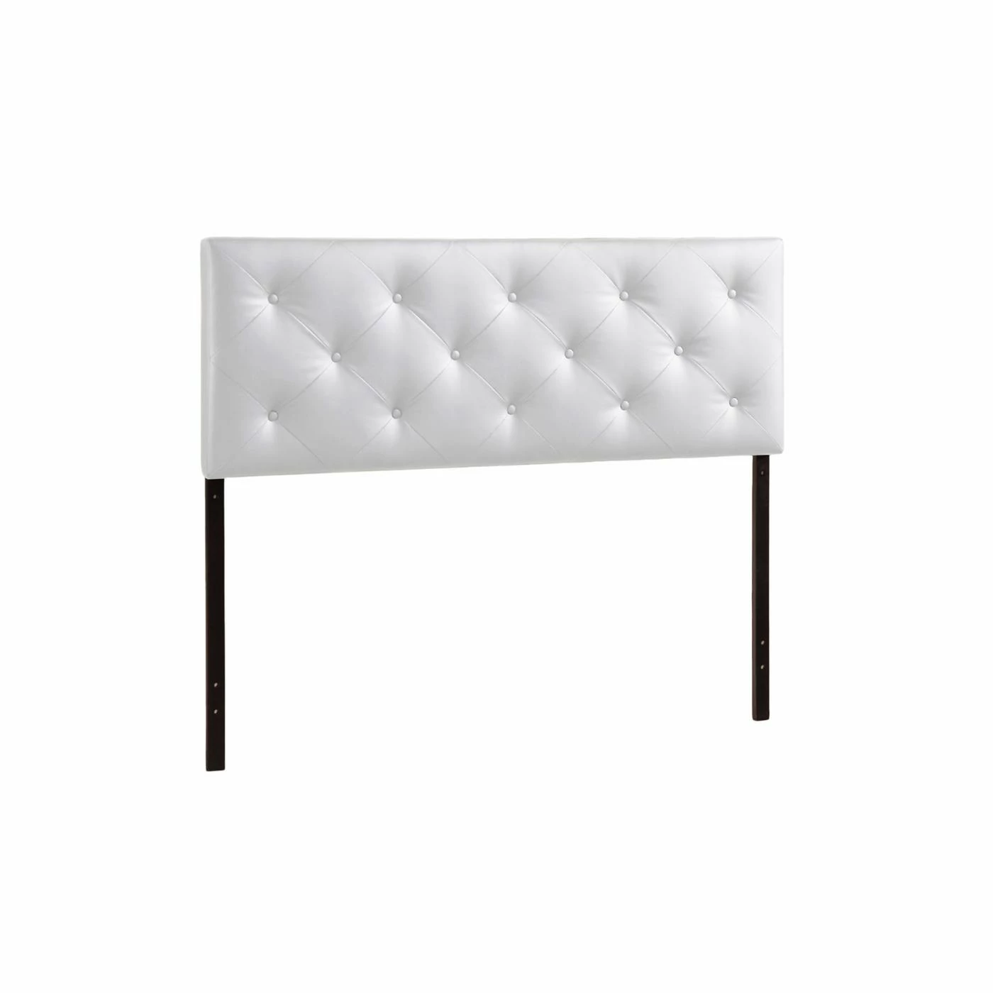 Perk up any platform bed with the Baxton Studio Baltimore Upholstered Headboard. Designed for king-sized platform beds with any Leggett and Platt bed frame, this headboard features a sturdy rubberwood frame with foam padding. Best of all, it’s fully upholstered in your choice of faux leather, while the diamond-shaped button tufting adds style that’s both cozy and chic. The headboard comes with 2 pre-drilled holes with height from ground up of 5.5 and 8 inches. The upper part on the back of the headboard’s legs comes with five pre-drilled holes with 2.55 inches apart from one another for height adjustment.