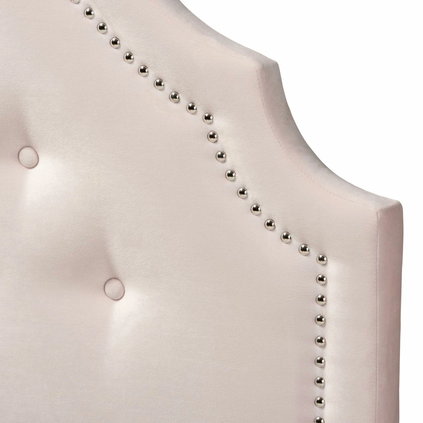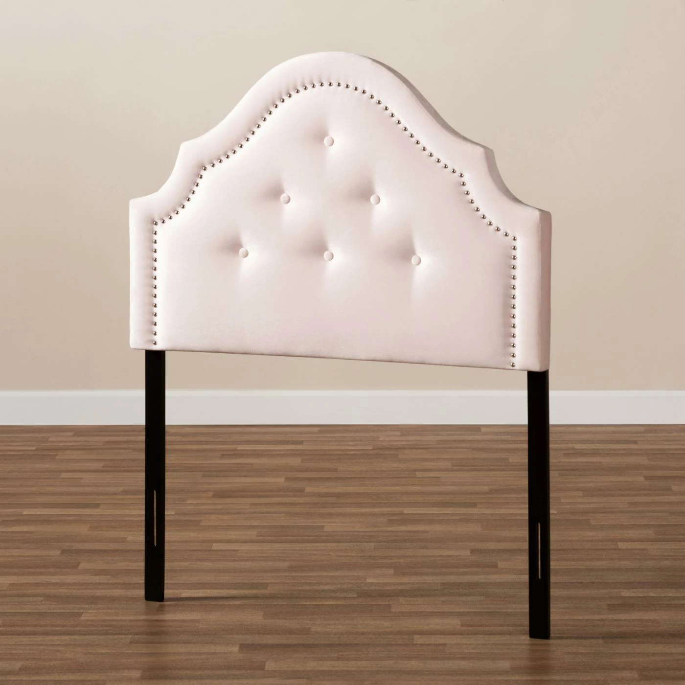 Your glamorous bedroom will be complete with the Baxton Studio Cora Velvet Tufted Upholstered Headboard. Silver nailhead trim creates an outline around the button tufted design in the middle of this arched headboard. Choose from the available velvet polyester fabric upholstery options to match your current style. The rubberwood and plywood frame is padded with foam. Choose from the available sizes to find the best fit for your bed.
