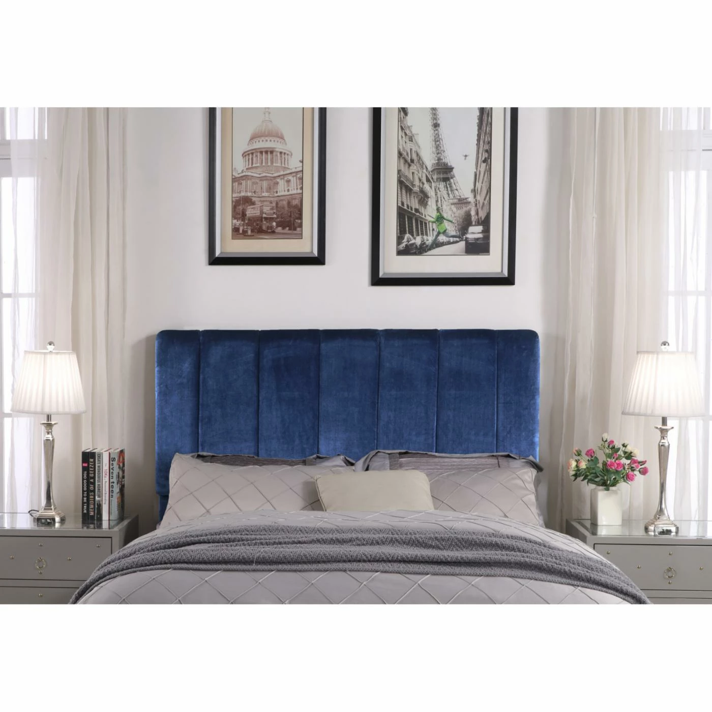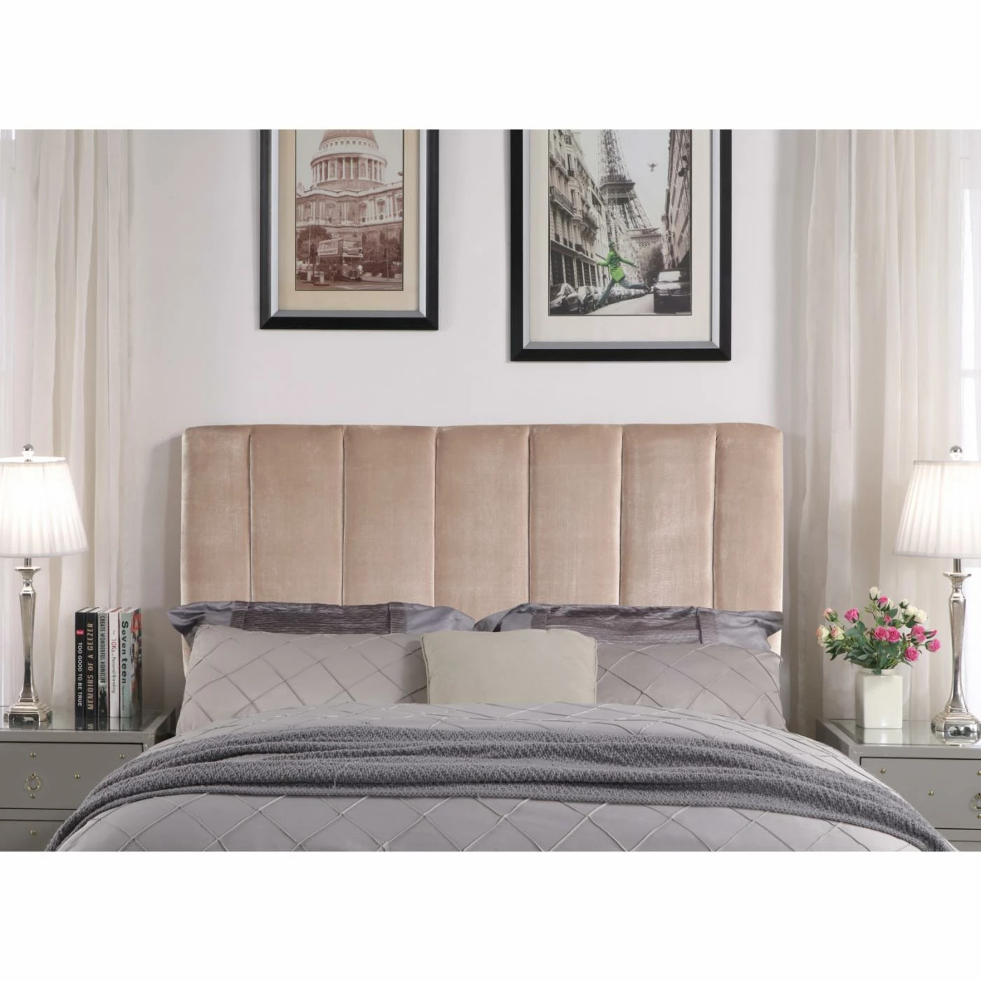 Add modern style to your guest or master bedroom with the Chic Home Anwar Velvet Upholstered Headboard. Crafted from wood and upholstered in luxurious velvet fabric that comes in your choice of available colors, this headboard complements any decor. Channel tufting adds an air of contemporary elegance youโll love.
