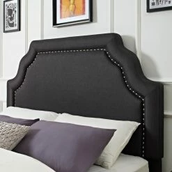 Inset nailhead trim frames the Crosley Loren Keystone Upholstered Headboardβs curving design with a subtle gleam. This headboard boasts thick foam cushioning to make it comfortable to lean against. The linen upholstery lends the style sophisticated charm. Durable engineered wood and solid hardwoods give it sturdy structure.
