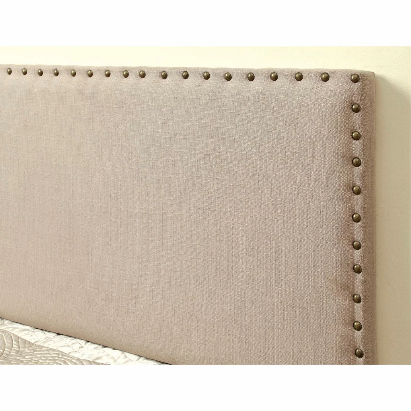 With its contemporary shape and large nailhead border trim, the Barber Nailhead Trim Headboard is a perfect way to dress up your bed. Built to last of solid wood and padded for luxurious comfort. This rectangular headboard is upholstered in flax fabric that comes in a variety of soothing color options. Choose from available headboard size options.