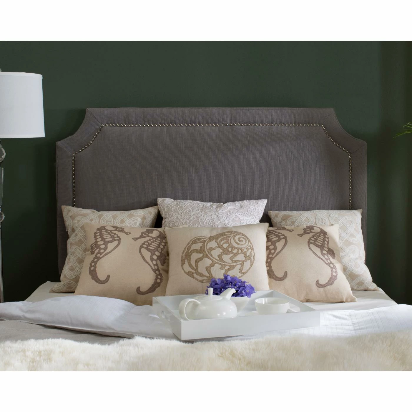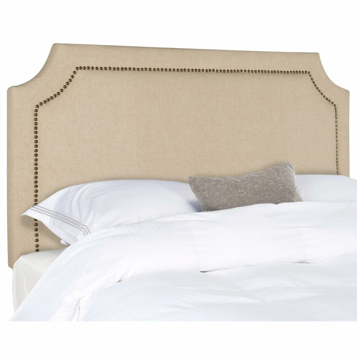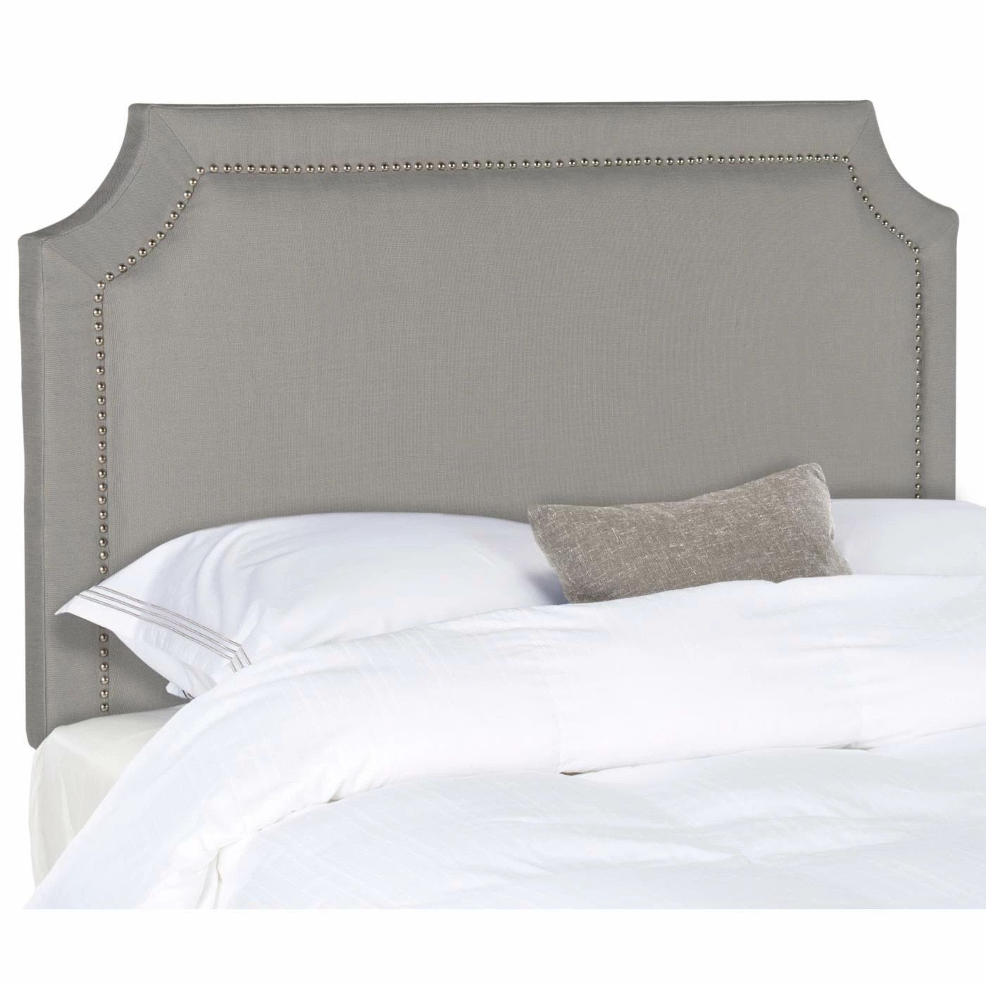 Ready for a dynamic change to your décor? The HN Home Olathe Transitional Upholstered Headboard is here to fulfill your needs. This headboard features a captivating design with a wide frame that has scalloped corners and an intricate nailhead border. The frame of this piece is rendered from thick, long-lasting plywood and wrapped thickly in dense, soft foam. The 100% linen upholstery comes in your choice of available color and pattern. Choose an available size.