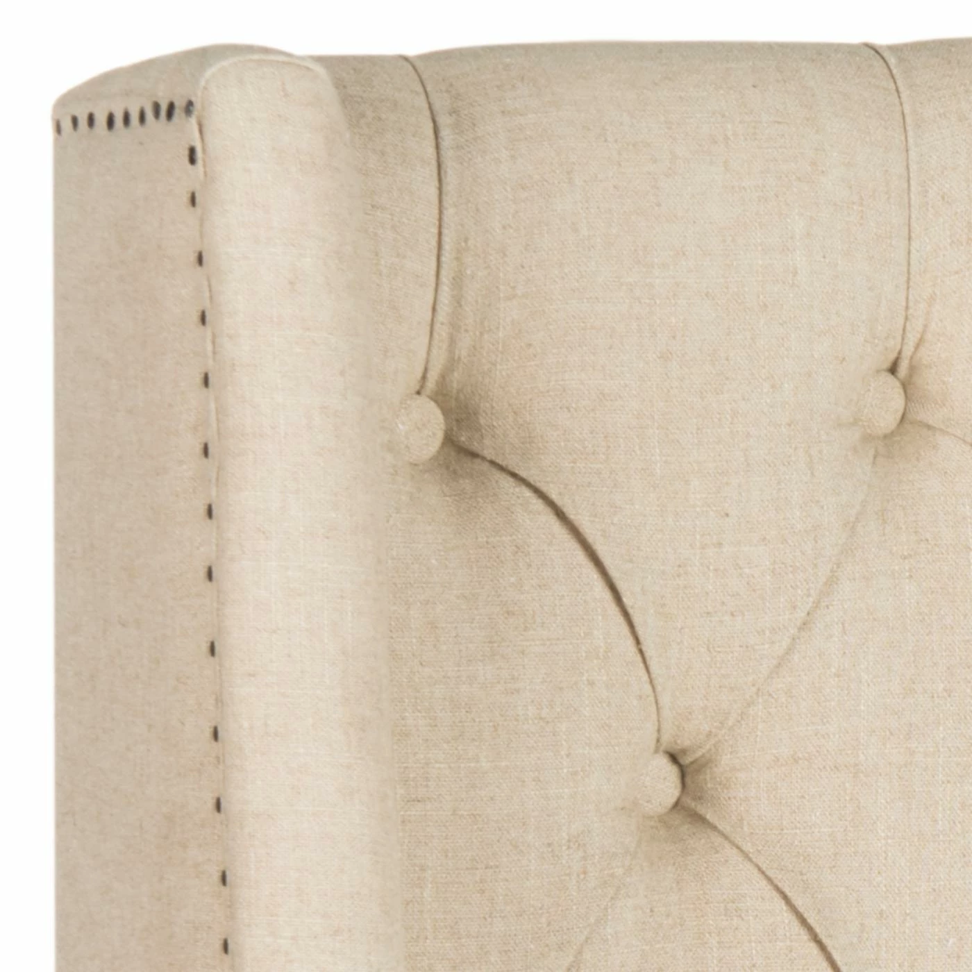 There’s no finer backdrop for a leisurely weekend morning than the HN Home Orange Transitional Upholstered Headboard. This wide, rectangular headboard is a perfect fit for your classical bedroom design aspirations. Its shallow, wingback sides and diamond-tufted face lend a sense of austerity with just a hint of playfulness. The frame is crafted from tough plywood and padded thoroughly with foam. A layer of plush fabric upholsters the piece in your choice of available color. Choose an available size.