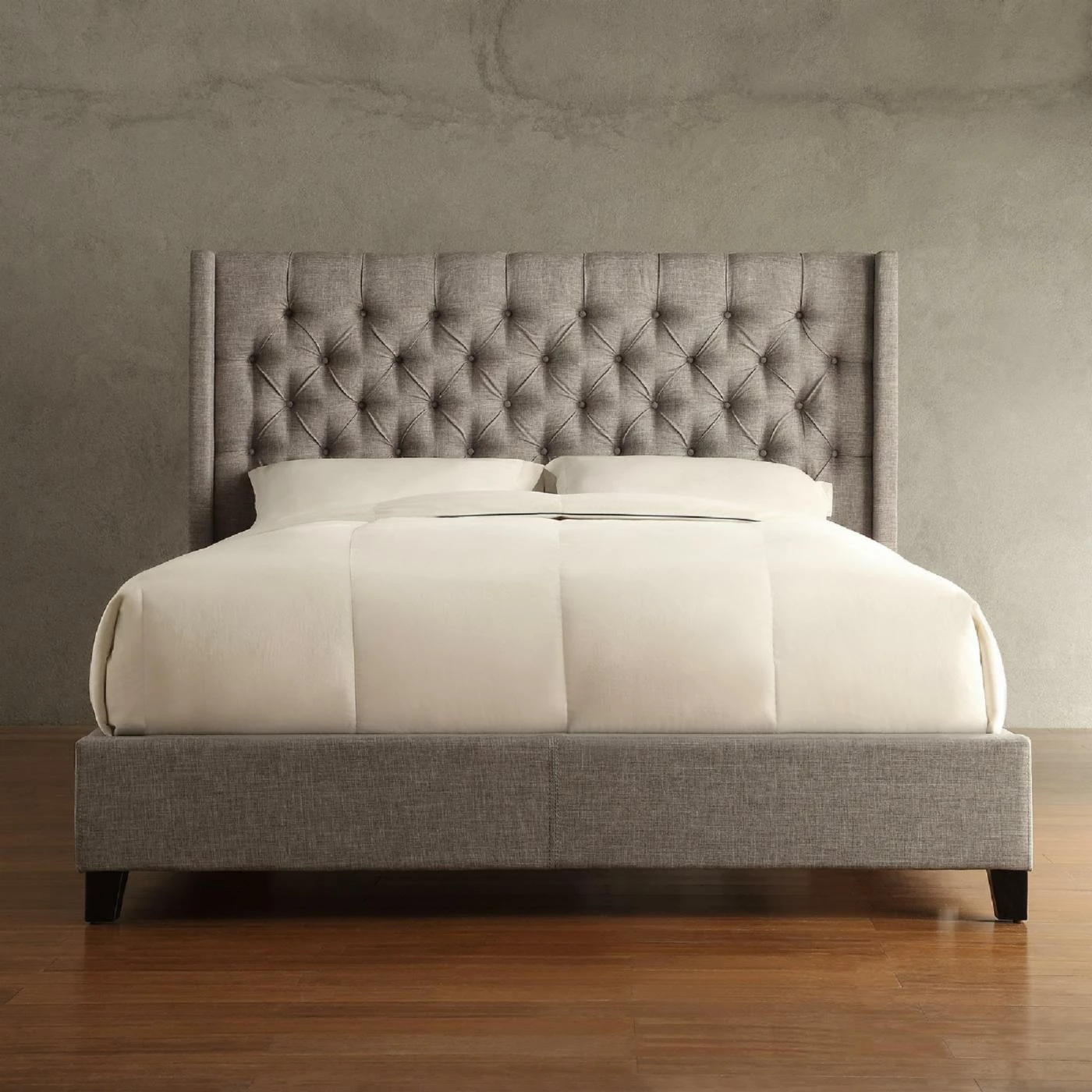 - Wingback headboard is tufted