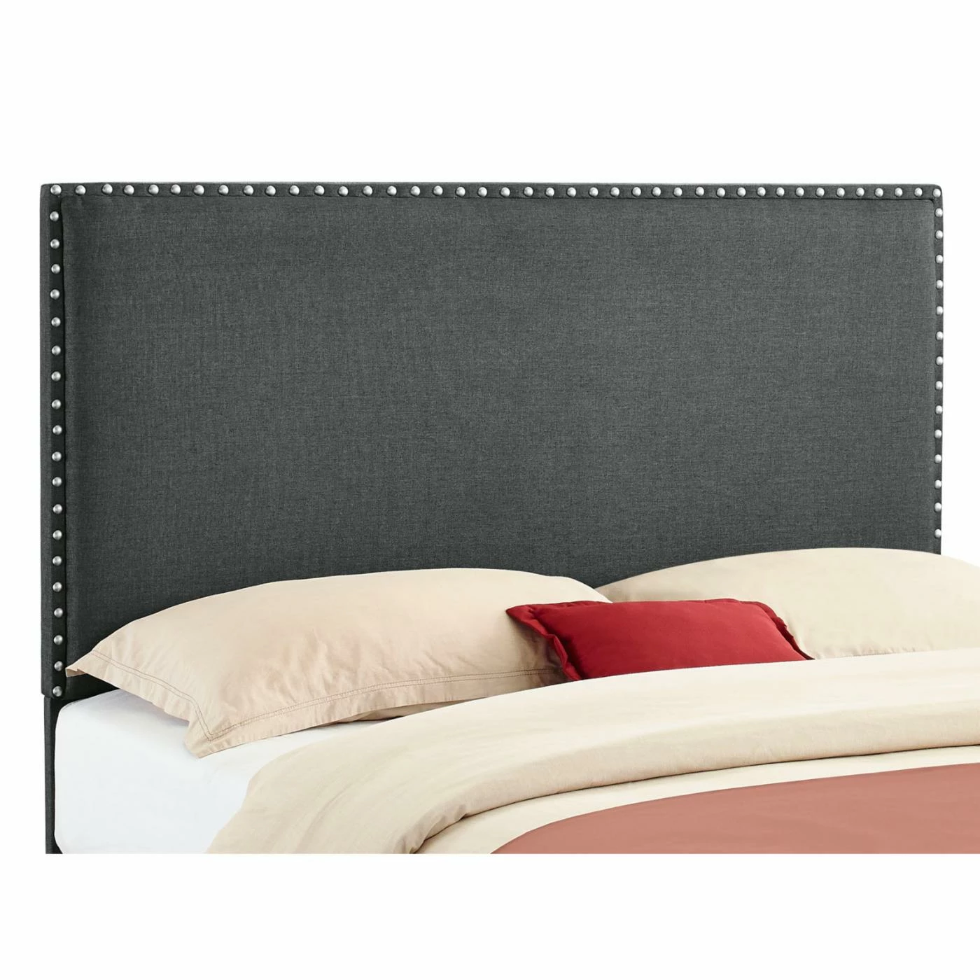 Accentuate your bed with the stunning Linon Contempo Upholstered Headboard. This modern headboard features a sturdy MDF wood frame with plush linen upholstery filled with foam. Choose from available color and size options. Nailhead trim lines the headboard, highlighting the clean lines and adding a contemporary edge. This piece fits most standard-size beds.
