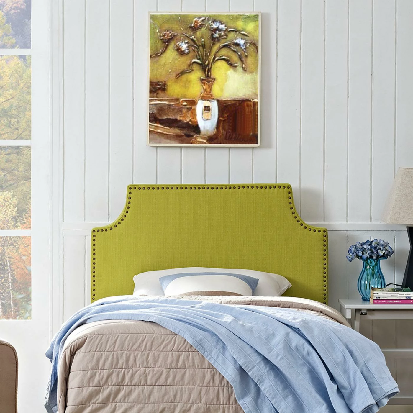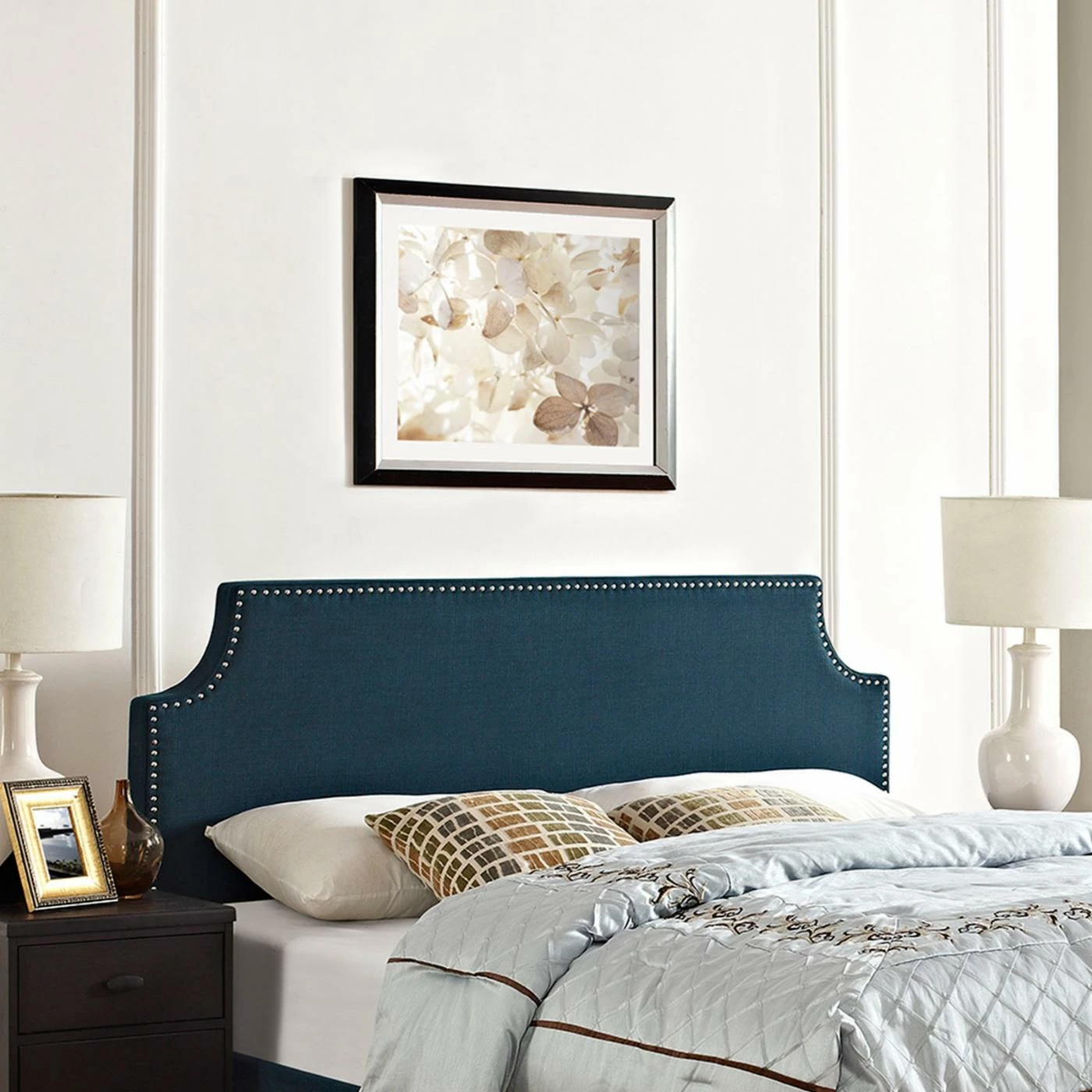 Bring a chic-contemporary note to bedroom dΓ©cor with the Modway Laura Upholstered Headboard. Crafted from a solid wood frame, this headboard boasts sleek vinyl upholstery that mimics the look of faux leather for a distinctively glamorous look. Nailhead trim lends a note of vintage-inspired charm to the look, allowing this headboard to pair easily with nearly any decorative style. With its dense padding, this upholstered headboard will bring undeniable comfort to your bedding.