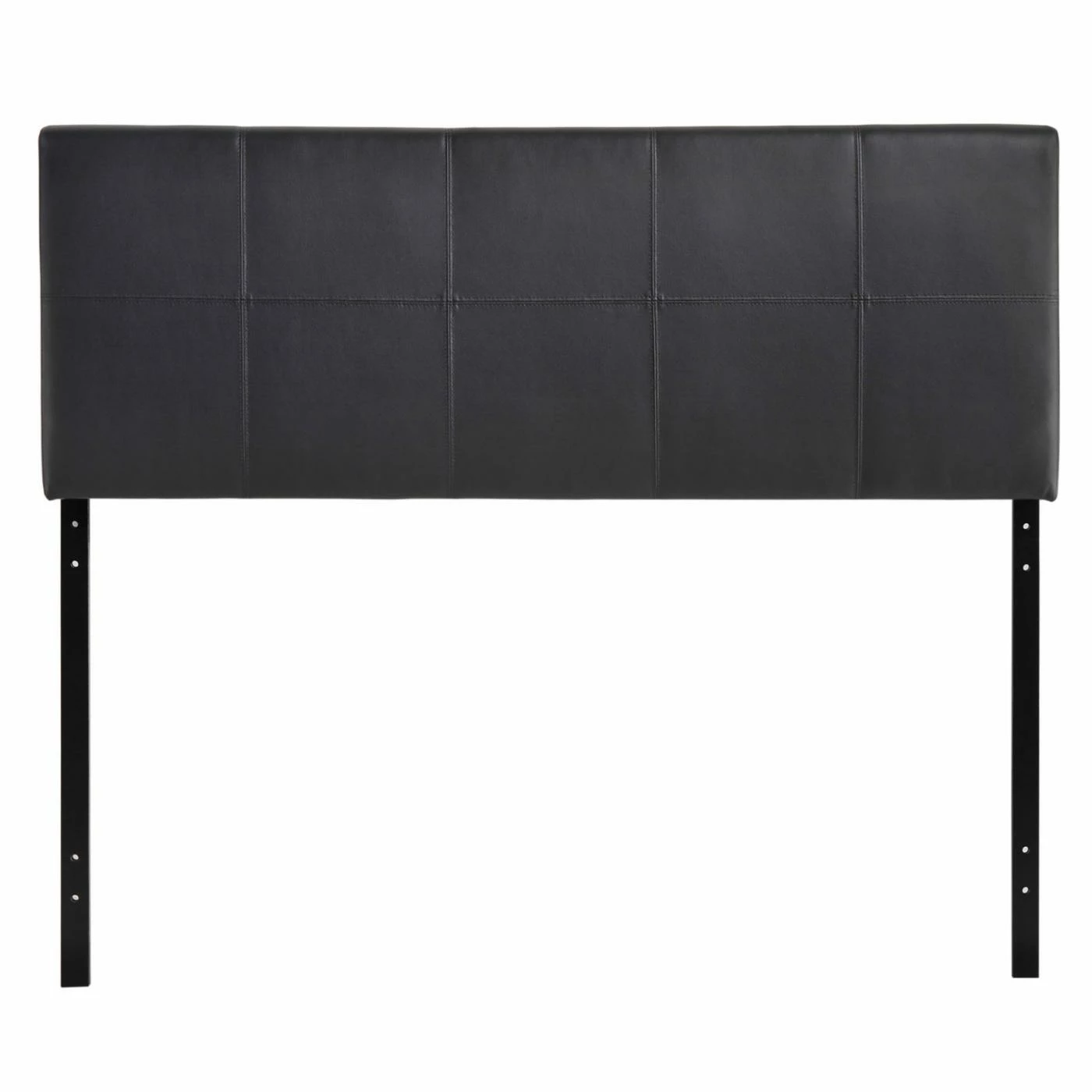 Modern in its appeal, the Oliver Vinyl Upholstered Headboard makes a statement. This queen sized headboard is built with a pine wood frame topped with thick padding and detailed with square stitching. It is upholstered in your choice of polyurethane leather colors.