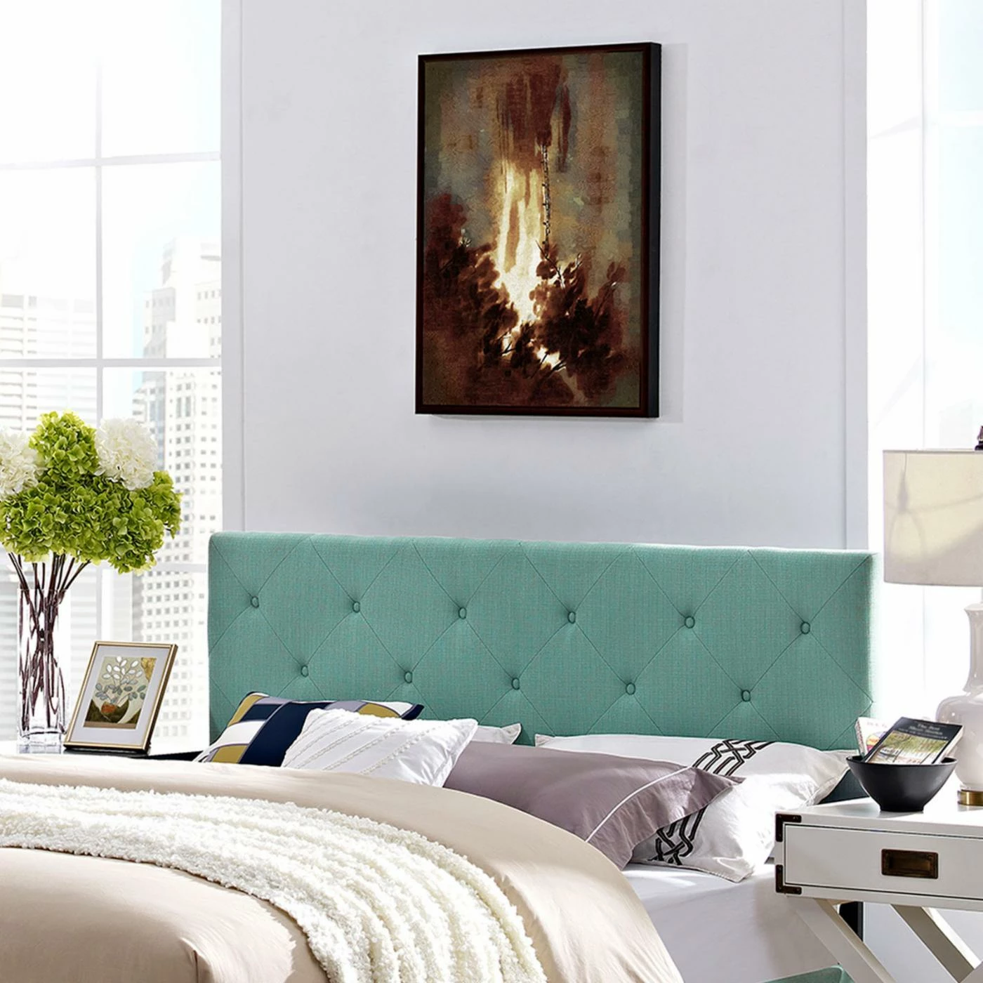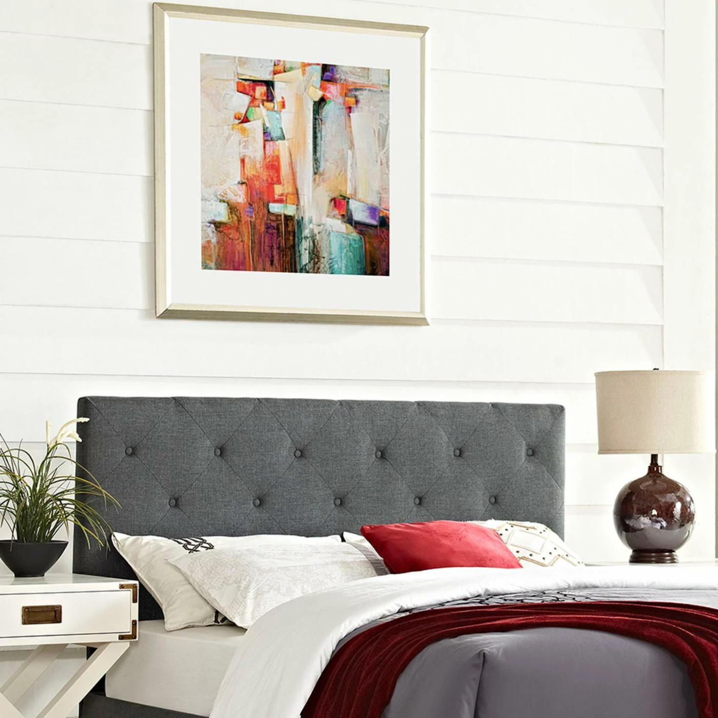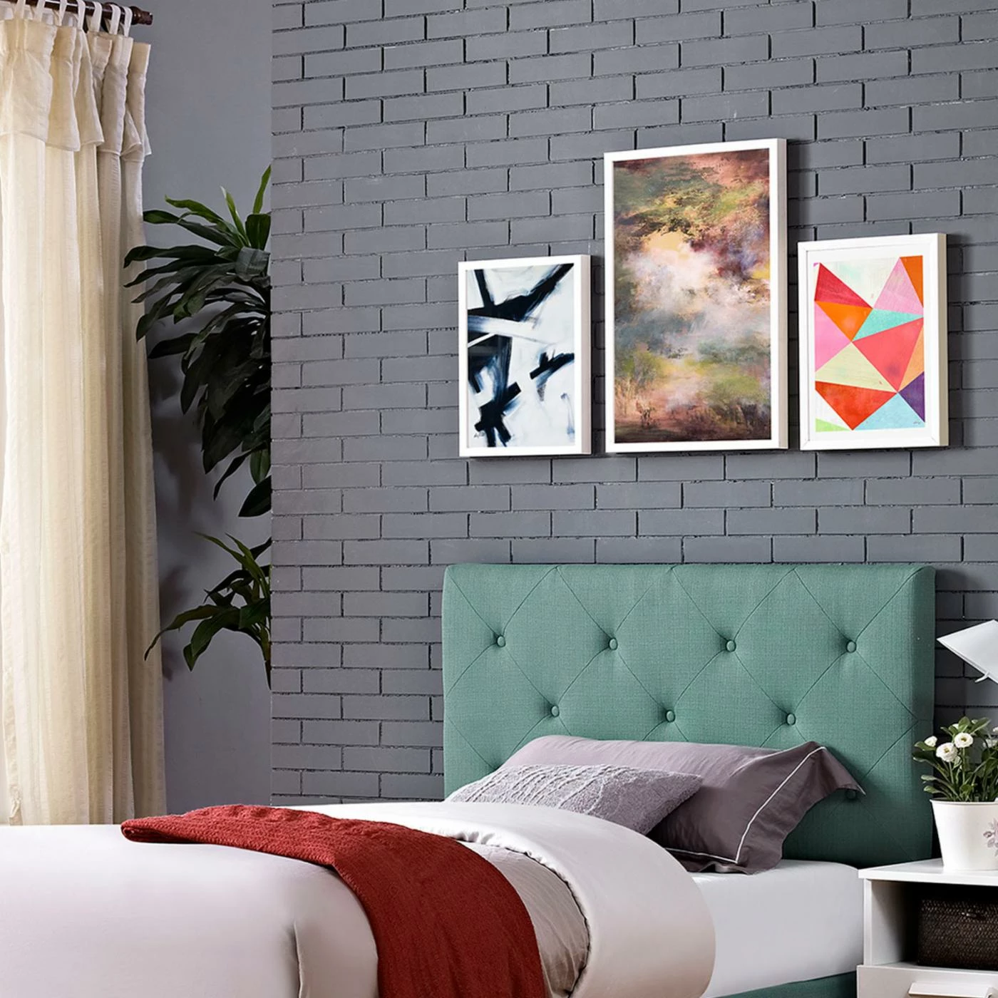 Crafted from solid wood, the sleek Modway Terisa Upholstered Headboard will bring a modern aesthetic to your bedroom. Its diamond pattern trim brims with elegance, while the deep button tufting will add a note of glamour to your setting. Its dense foam cushioning enhances the comfort of your bed while providing added bed support. With clean lines, this headboard is sure to pair easily with any decorative plan.