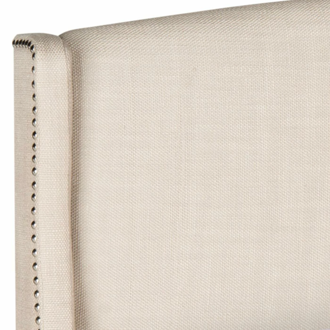 The Safavieh Austin Wingback Upholstered Headboard features a streamlined look that’s a contemporary interpretation of a timeless wingback style. This wide headboard features a rectangular shape with a curved top, constructed from durable plywood. The frame is padded with thick, soft foam and then upholstered with a fine linen in your choice of available color. The wingback sides are impressive without being overwhelming. Select from available sizes; includes headboard only.