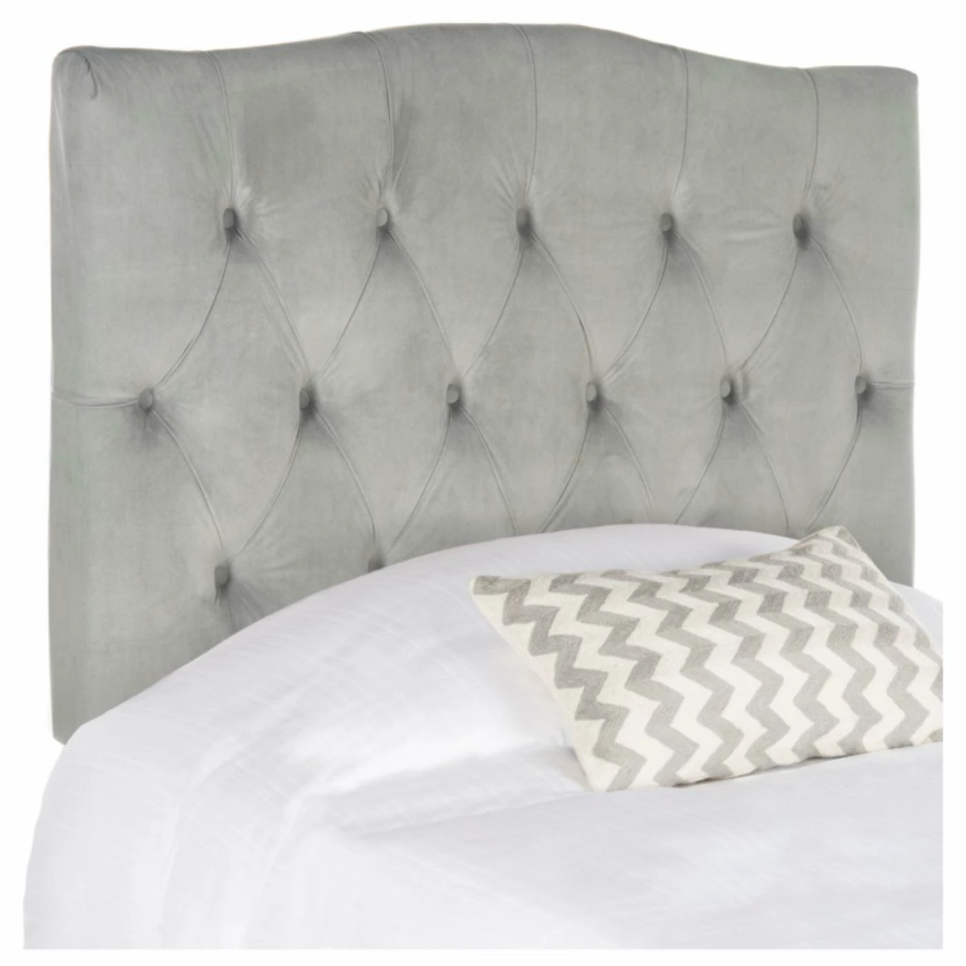 The Safavieh Axel Upholstered Headboard helps make your bedroom design feel more welcoming and personable without feeling too casual. This wide, rectangular headboard does traditional and transitional rooms a great service, offering a classical look and bold color that ties any room design together. A plywood frame supports the design, padded generously with fine foam and upholstered in a blend of cotton, polyester, and linen. The face of the headboard features diamond tufting. Fabric comes in your choice of available color options. Choose an available size.
