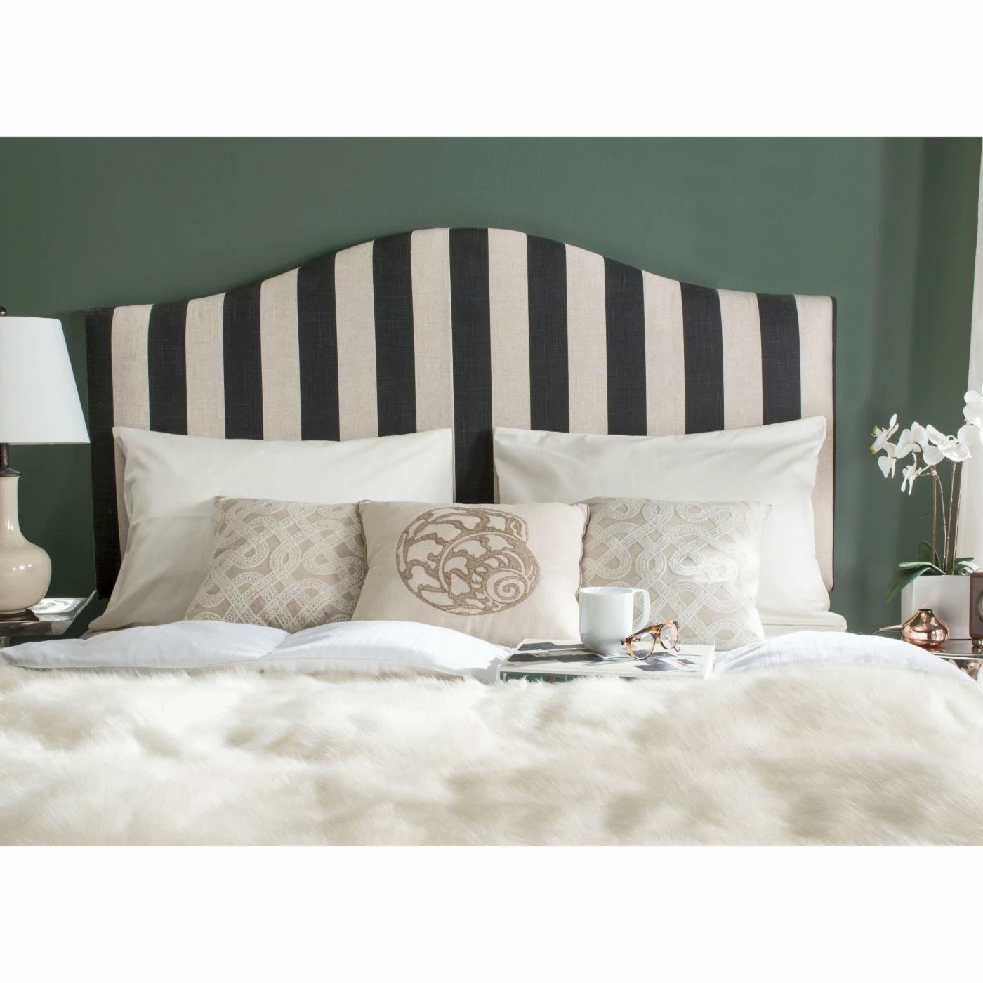 Nothing is more classic and enhances any look like stripes. The Safavieh Connie Stripe Upholstered Headboard gives the perfect dash of timeless style to any bed and bedroom. With select color options, you’re sure to find one that fits beautifully in your bedroom. The gentle, classic camelback silhouette and panel design comes in your choice of available size to perfectly top off your bed.