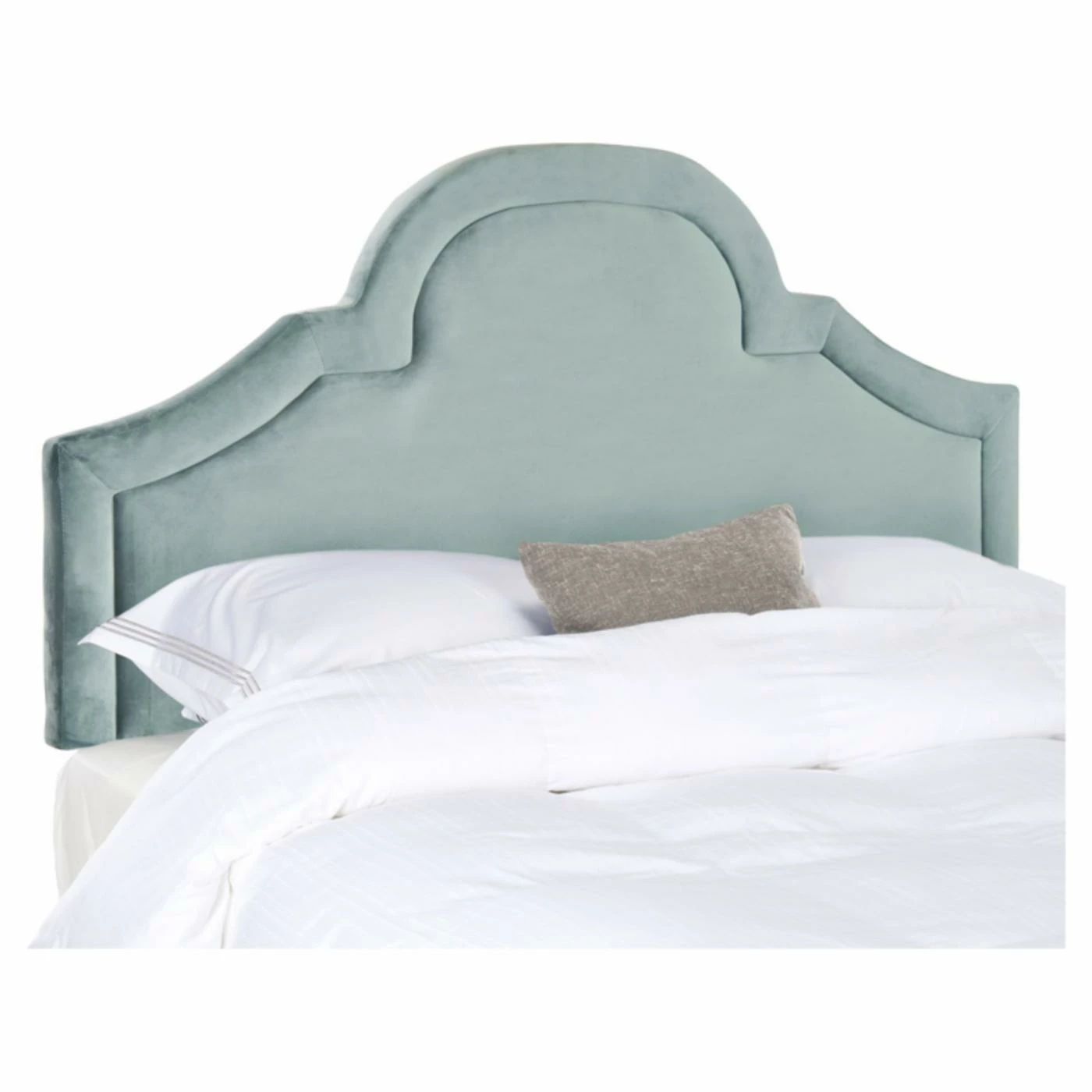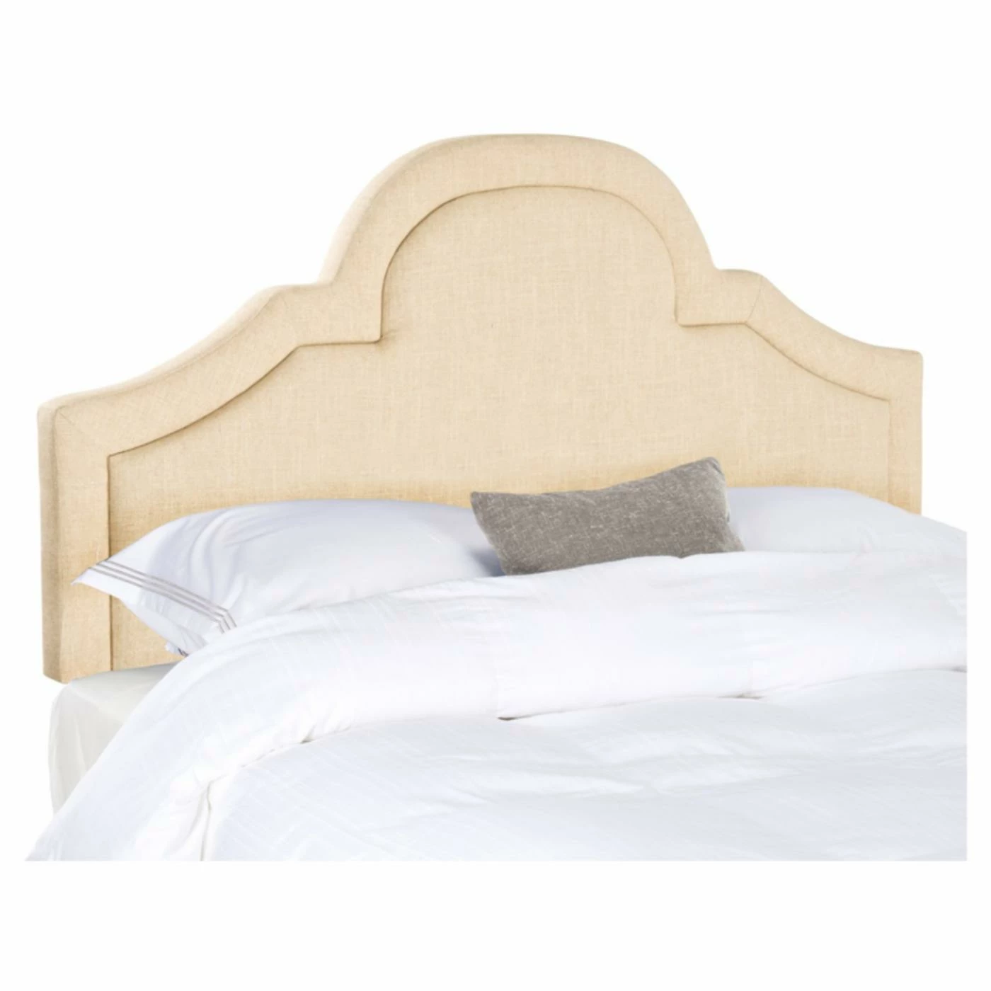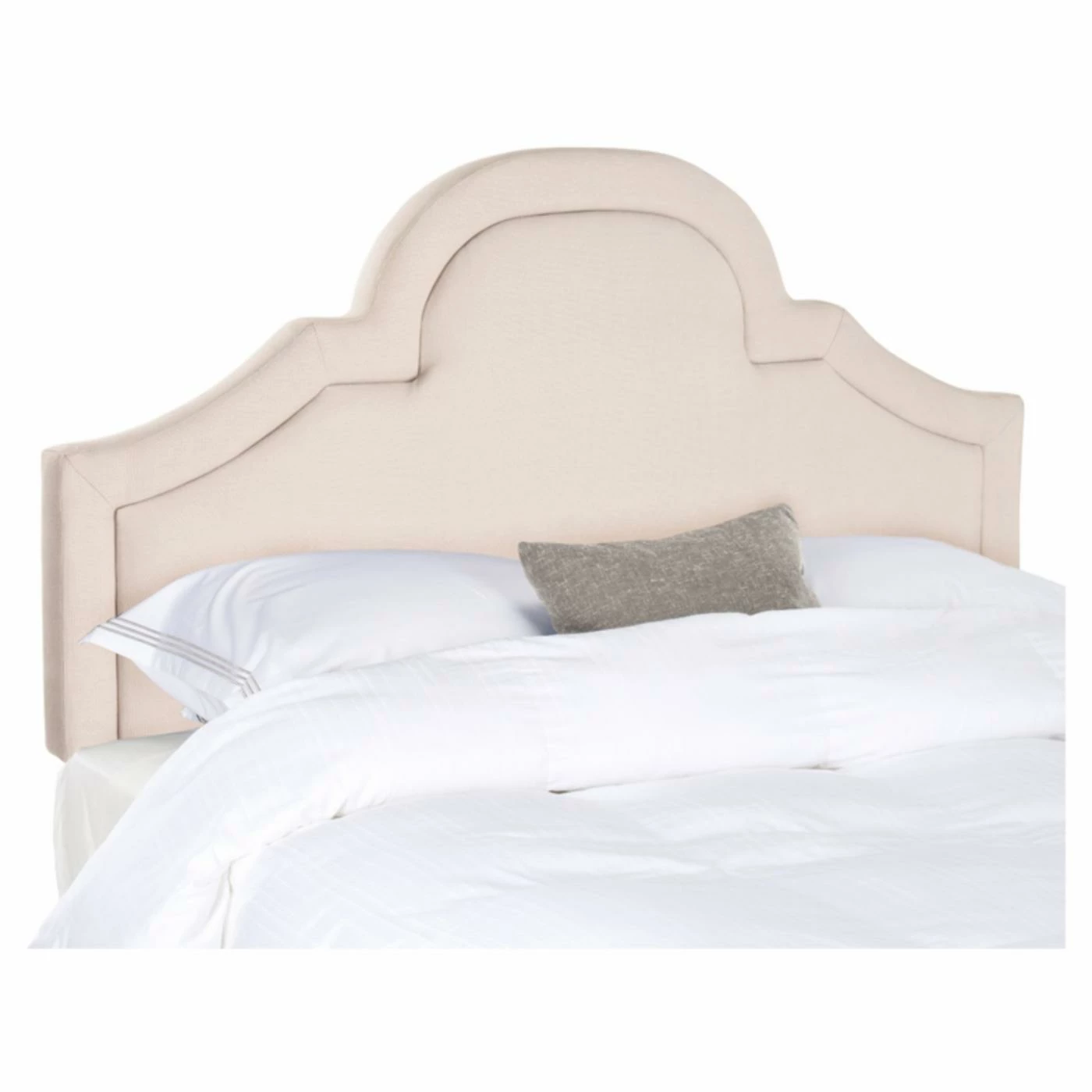 Cease your shopping: the Safavieh Kerstin Upholstered Arched Headboard is that final touch for your bedroom that you’ve been searching for. Its enchanting shape and simple color scheme make it a welcome addition to a wide variety of designs. The headboard boasts a curved peak and scalloped sides with a welted inner border. Tough plywood and a foam core support the design, upholstered in the fabric and color of your choice. Size and color options are subject to availability.