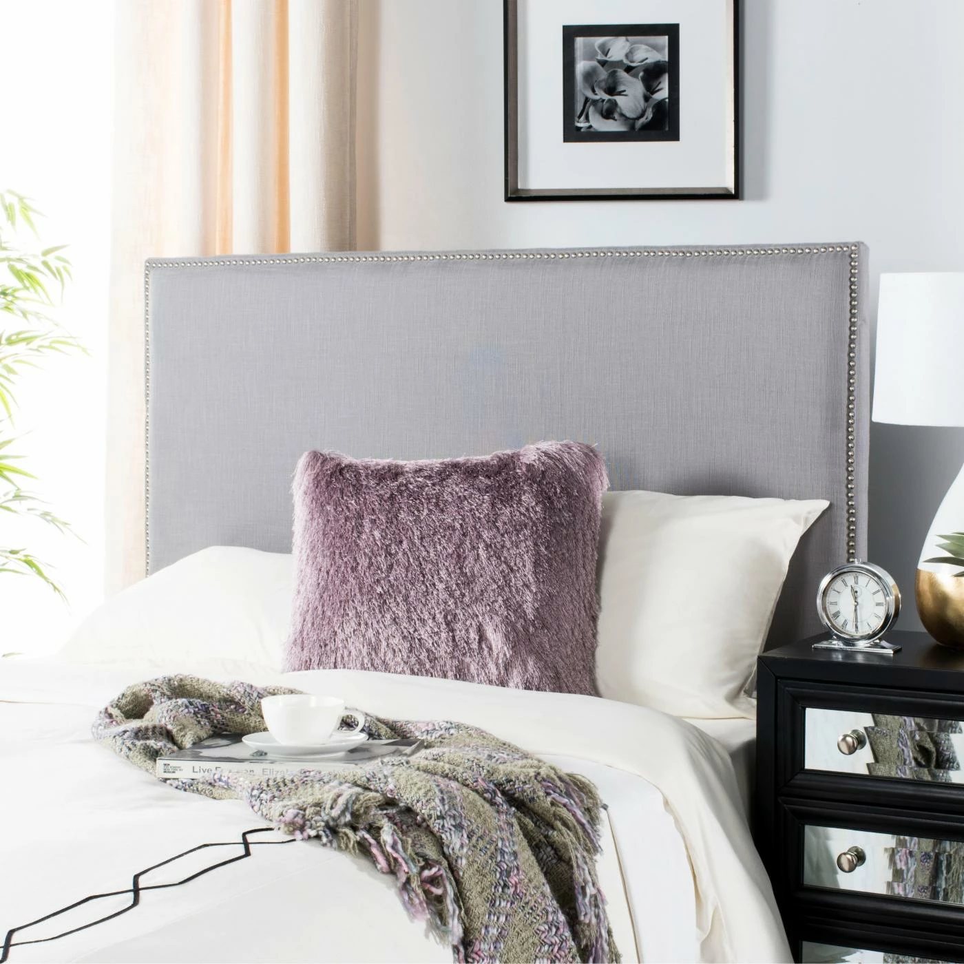 Simple yet luxurious, the Safavieh Sydney Upholstered Headboard features generous padding over its sturdy plywood construction. This headboard features a decorative nailhead trim and is upholstered in your choice of available fabric color. Choose from select size options.