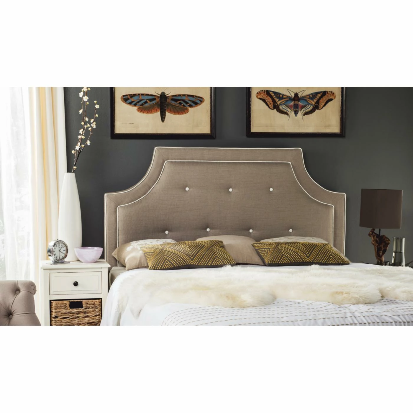 You’ll be hard-pressed to find a better fit for your new traditional-style design scheme than the Safavieh Tallulah Upholstered Headboard. Its triangular design features concave, curved sides with a triangular button design at the center and a piped inner border. Thick, reliable plywood is used to craft the frame, overlaid with plenty of foam padding. A blend of cotton, rayon, and terelyne is used to upholster the piece. Select from available size and color options.