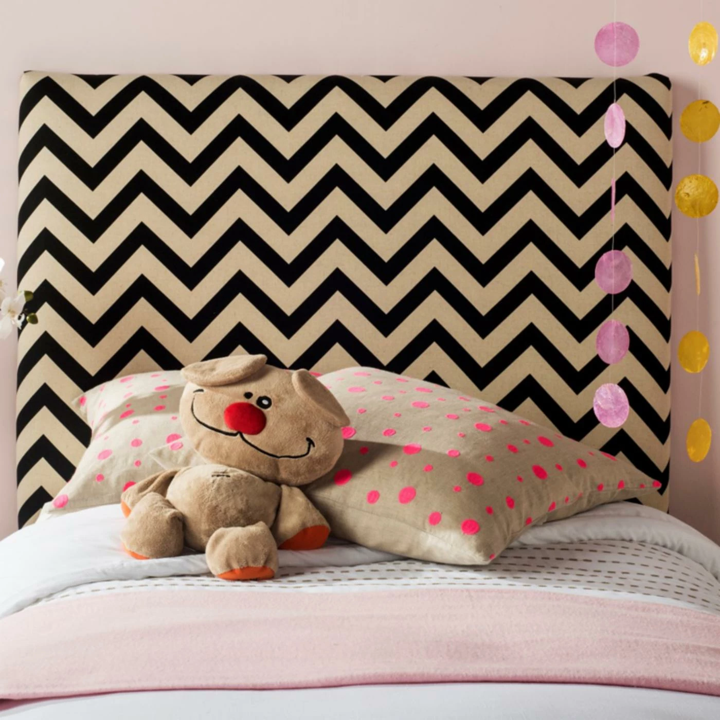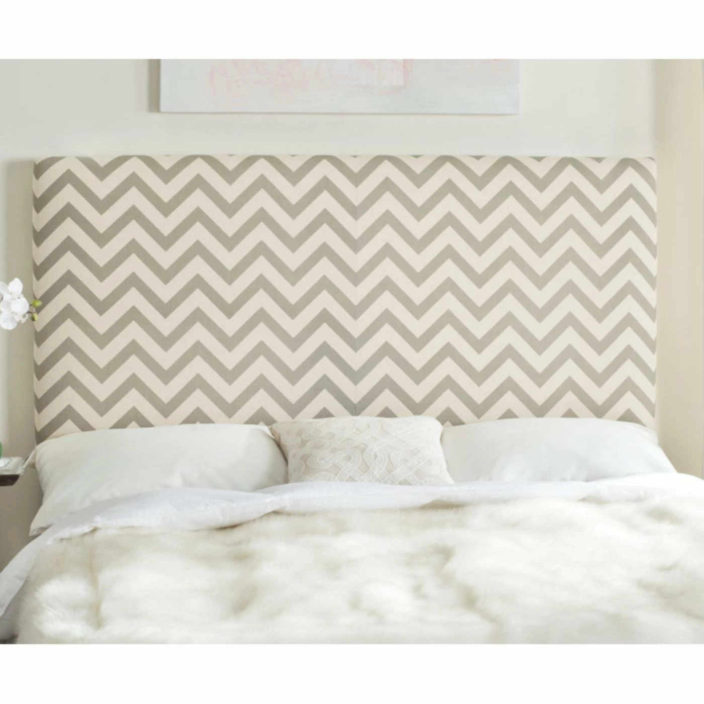 Introduce some much-needed energy into your bedroom design scheme with the Safavieh Ziggy Upholstered Headboard. This rectangular headboard is patterned with a timeless chevron zig-zagging pattern, available in your choice of light-and-dark colors (individual color options are subject to availability). The frame of this piece is supported by tough hardwood solids and comes padded thoroughly with foam. A blend of cotton and linen is used to upholster the piece. Select from available size options.