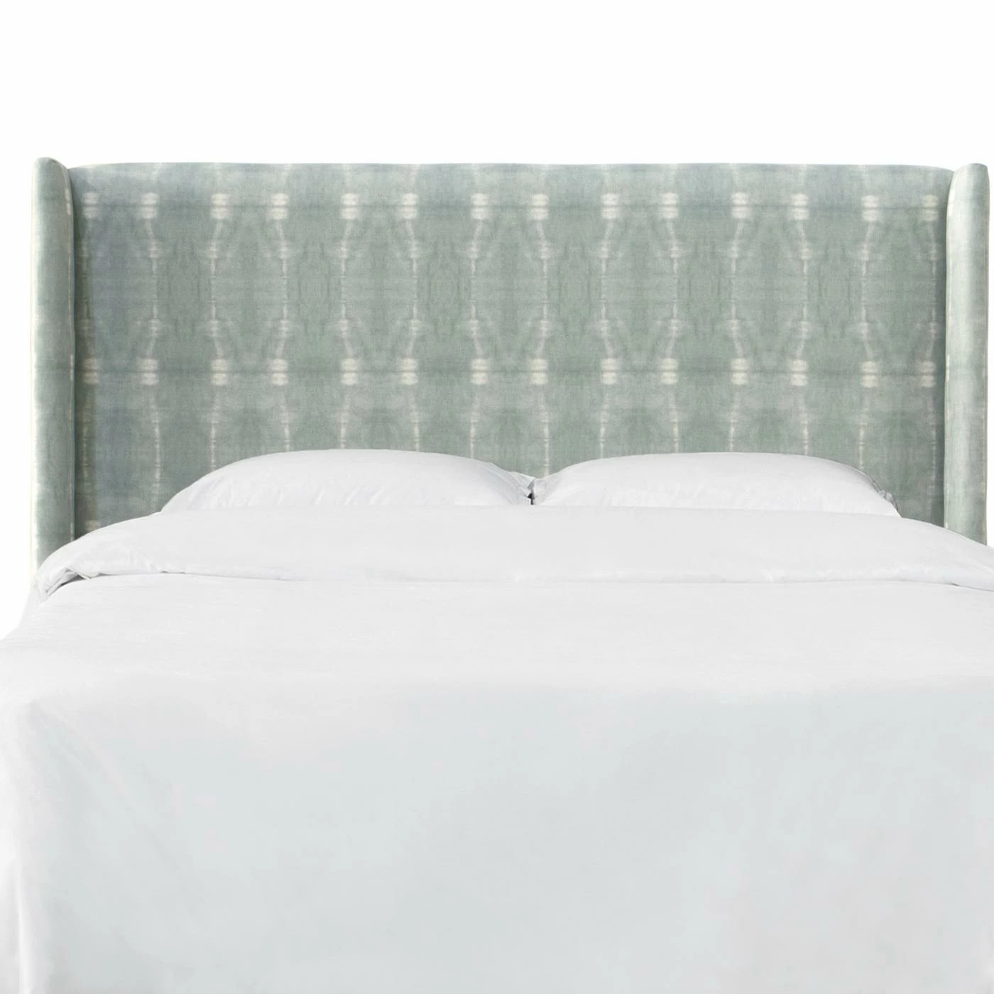 Swap out your outdated headboard in favor of the Skyline Furniture Bali Mist Wingback Upholstered Headboard. This headboard has a sharp, contemporary appeal with a wide, rectangular shape and deep wingback sides. Thick pine hardwood constructs the frame, padded generously with high-density foam. A polyester-linen blend fabric upholsters the headboard, featuring a swirling mist pattern in gray-green. Choose among the available sizes to best suit your needs.
