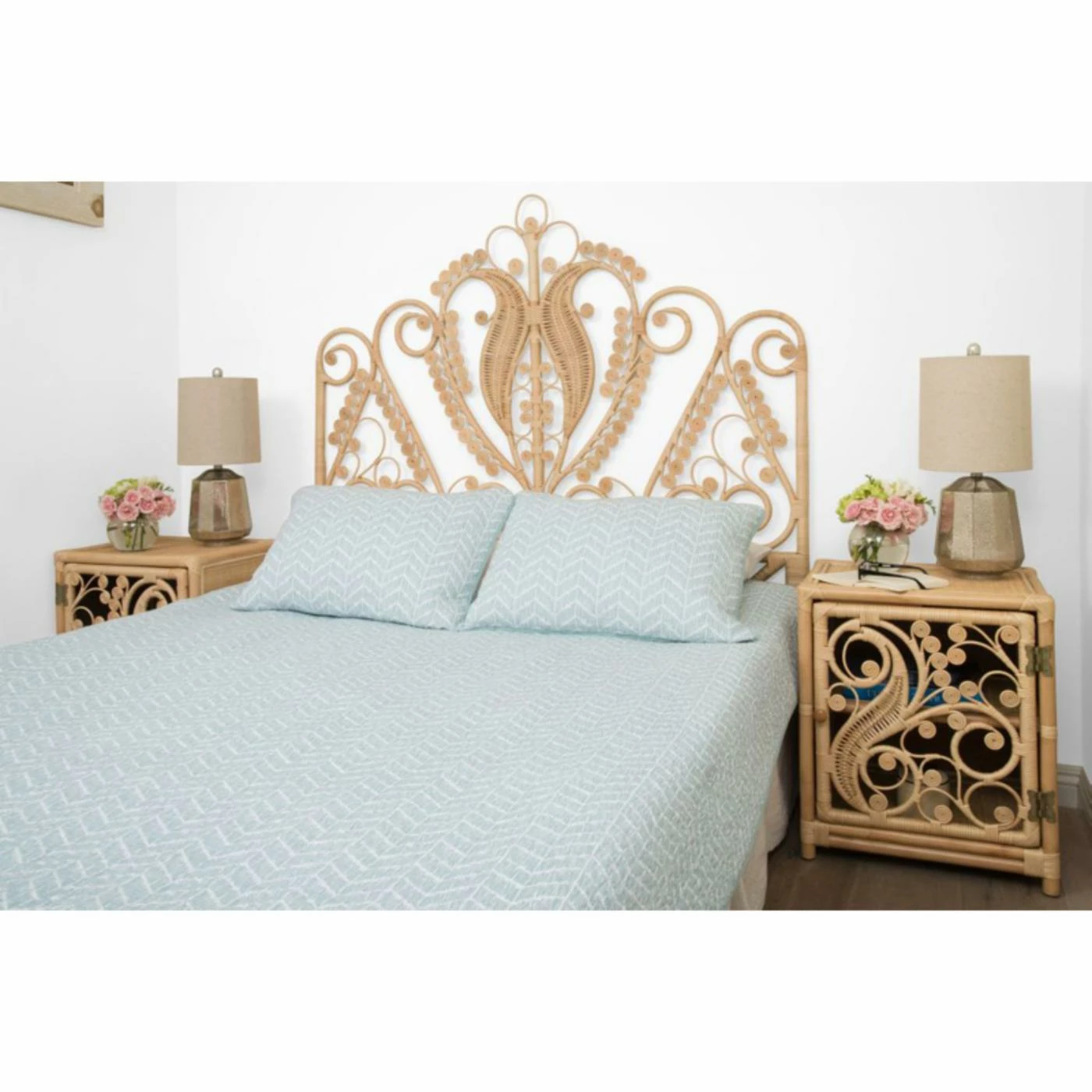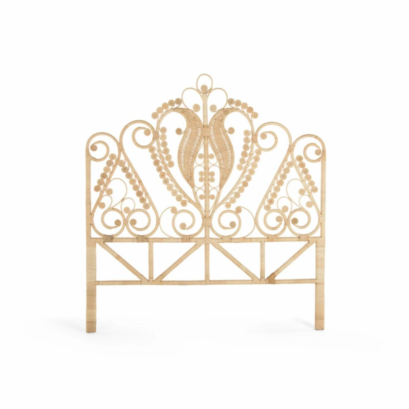 With the KOUBOO Peacock Rattan Headboard crowning your bed, you’ll wake to a sweet style dream every morning. This lightweight, high-drama headboard is hand-crafted with natural-grown rattan in a flourishing scrollwork design. How could you not want to peacock this plumage? Choose from the available finish and size options to best fit your space. No assembly required.