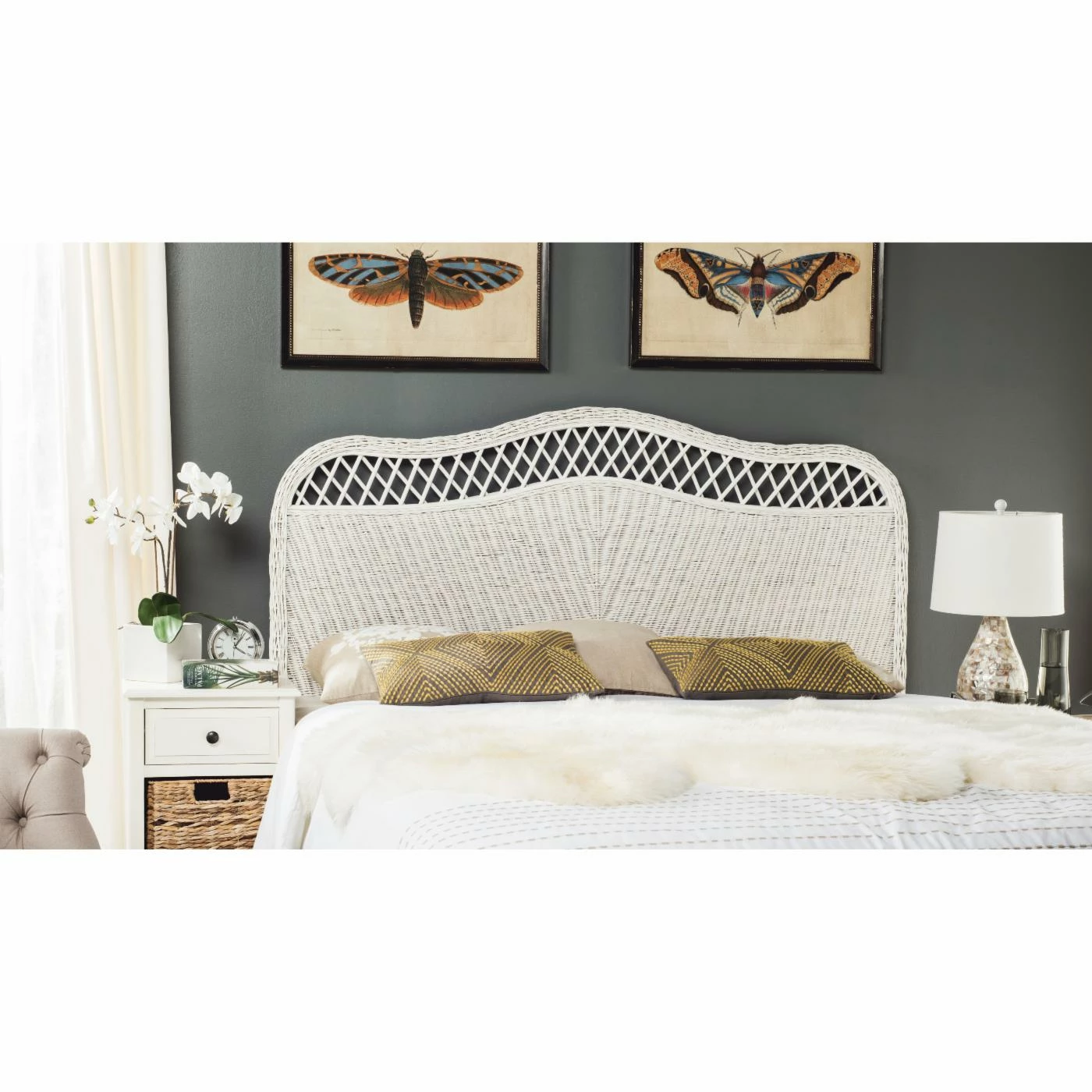 Breathe new life into your bedroom suite with this Safavieh Sephina Rattan Headboard. Perfect for lending an airy vibe to your coastal or country bedroom, this headboard is crafted of hardwoods and natural rattan in a casual whitewash finish. The all-over weave is capped by a camelback top design with open trellis work. This headboard is available in size options.