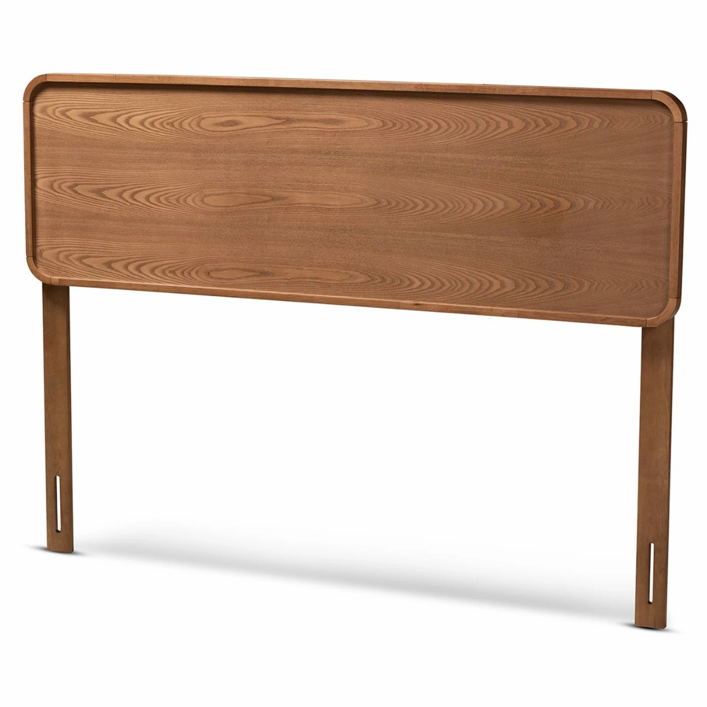 Attach the Baxton Studio Mailene Wood Headboard to an existing bed frame to give it a touch of mid-century style. This headboard features a wavy wood grain pattern in a warm ash walnut finish. The rectangular, inset back is accented with rounded corners. Pre-drilled holes and bracket cutouts allow you to attach this headboard in a position that best fits your mattress and bed frame.