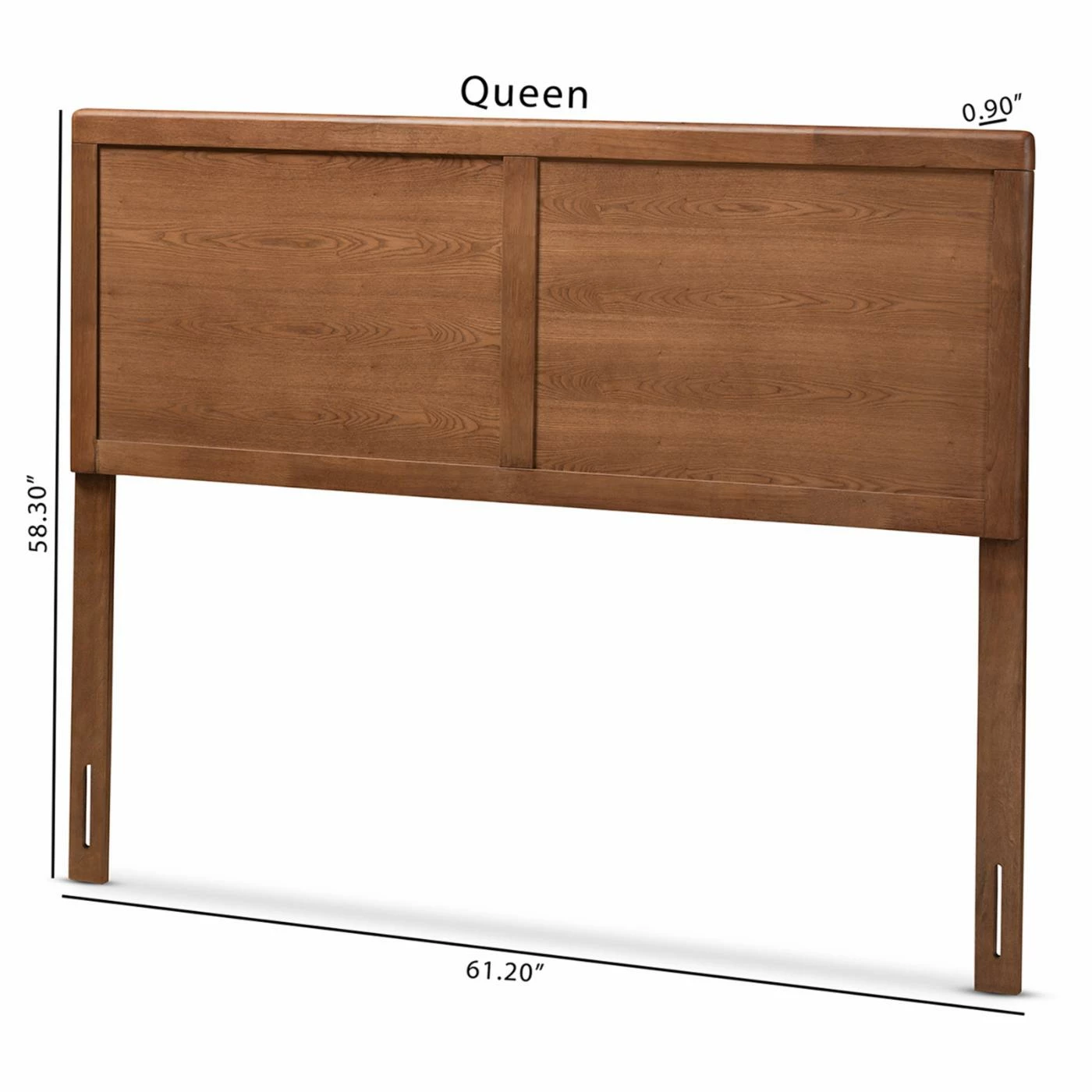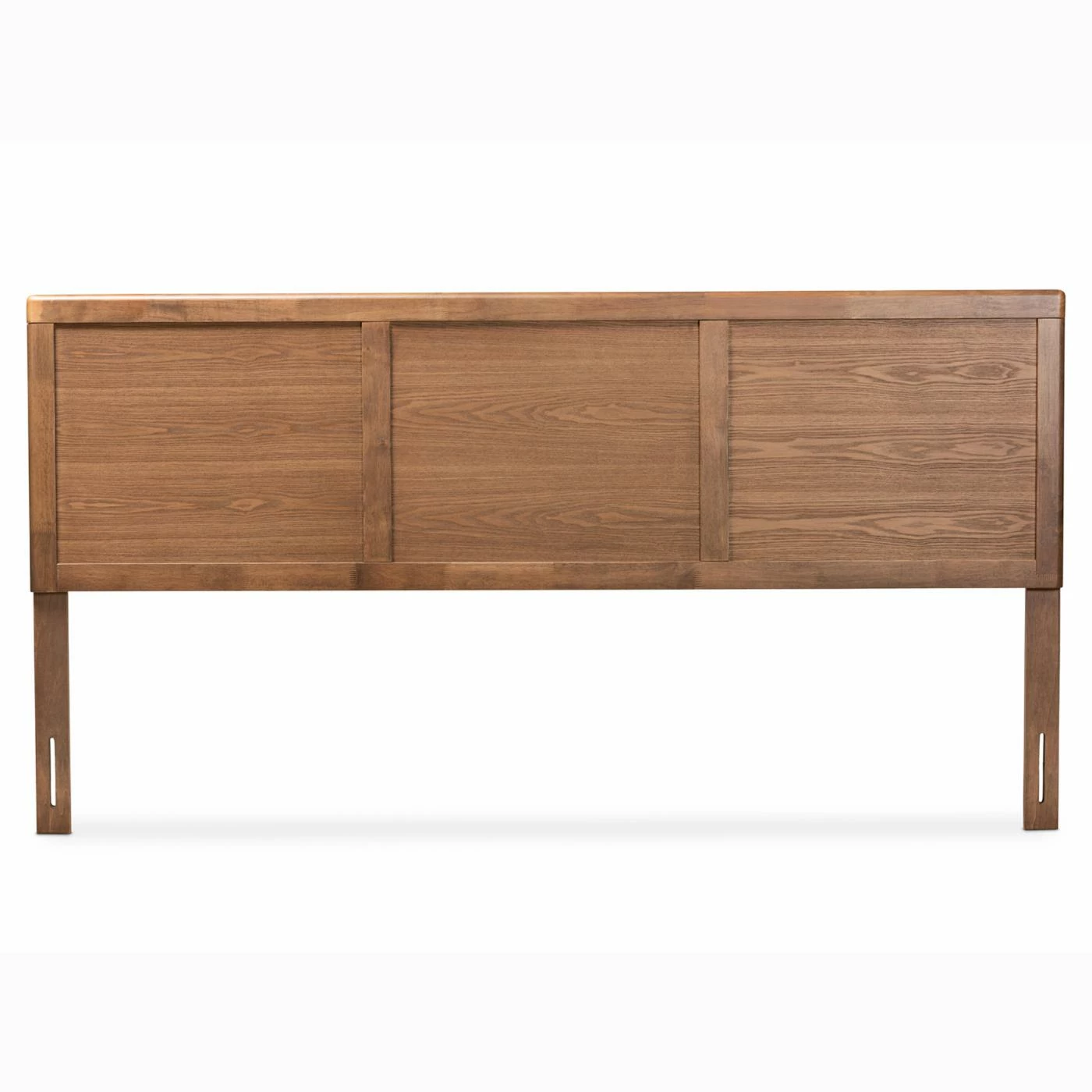 Whether your bedroom is traditional or modern, the Baxton Studio Raya Wood Headboard gives you a transitional centerpiece to build your dΓ©cor around. Rubberwood and engineered wood with ash veneer feature a wavy wood grain in a warm walnut finish. The rectangular inset back is accented with a simple wood frame. Pre-drilled holes and bracket cutouts allow you to attach this headboard in a position that best fits your mattress and bed frame.