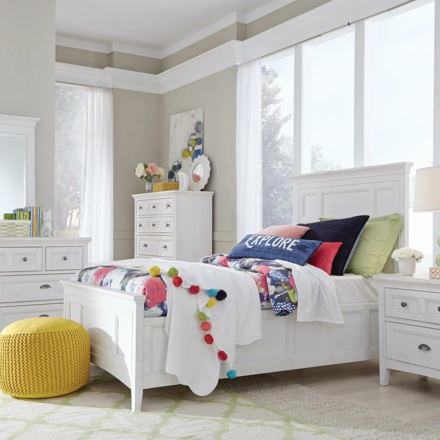 Update your bed with the Magnussen Heron Cove Panel Headboard, created with a coastal-inspired vibe. You’ll love this sturdy headboard that boast a chalk white finish for a beachy look. The framed, beaded style gives it a touch of dimension and visual depth.