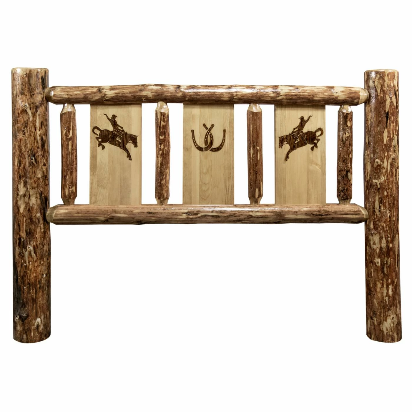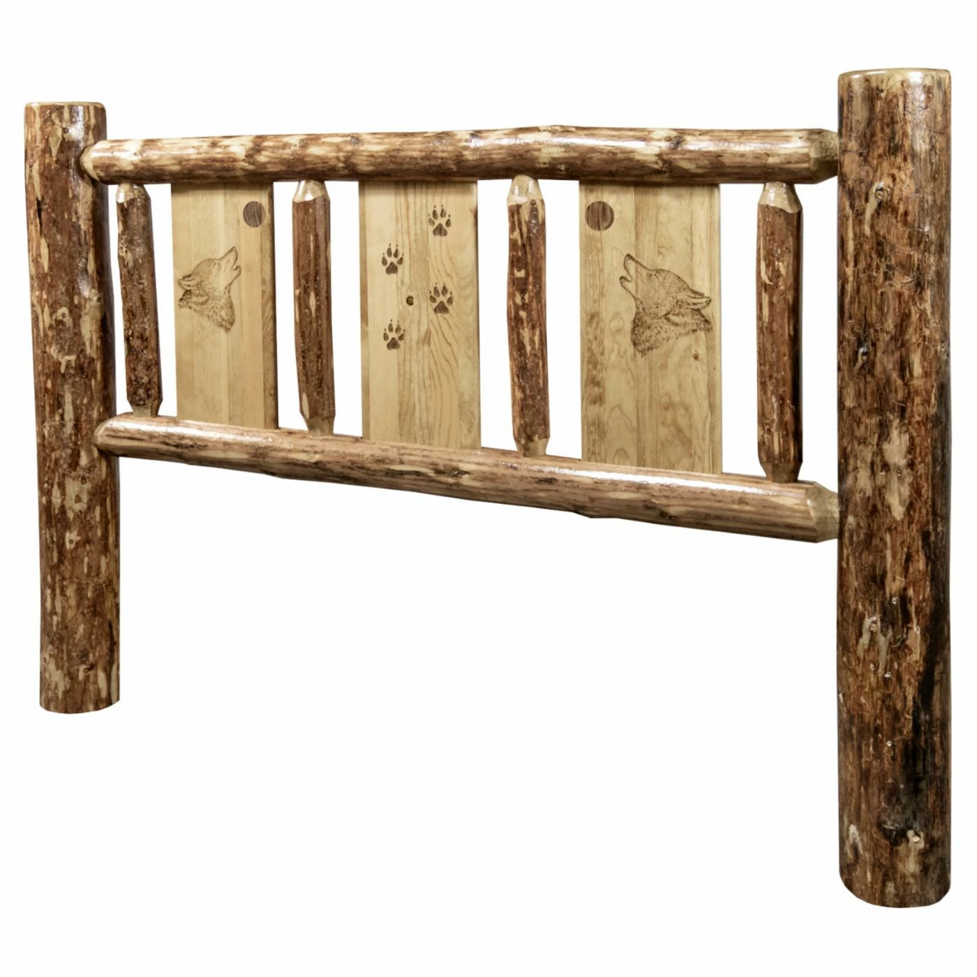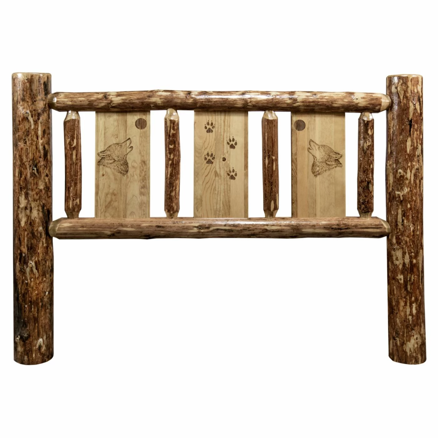 Customize the rustic Montana Woodworks Glacier Country Collection Headboard with Laser Engraved Design by choosing from available laser engraved images. This heirloom headboard is handcrafted by artisans in Montana from solid, American-grown lodge pole pine wood. An artisan uses old-fashioned draw knives to remove the outer bark and leave the inner cambium layer intact for rich contrast and texture. The headboard is then stained and lacquered in a professional eight-step process. Choose from available size options.