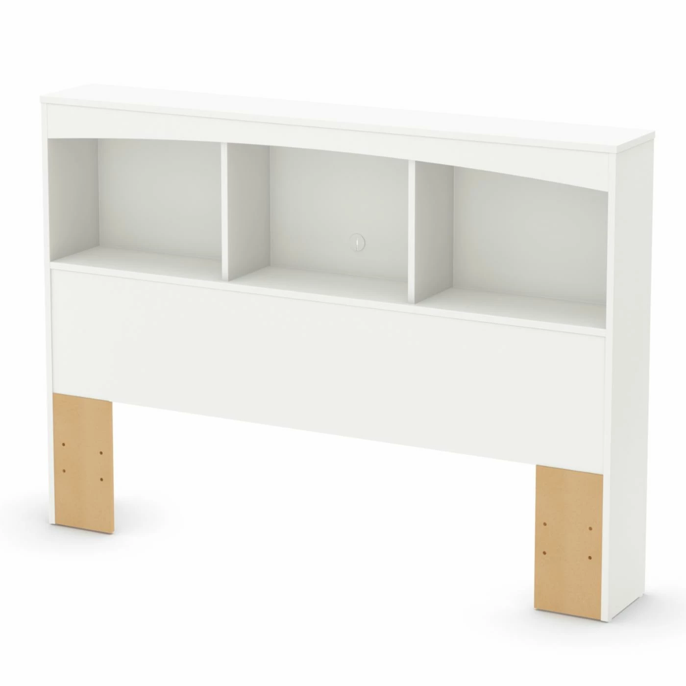 Get more storage space in your bedroom with the Step One Full Bookcase Headboard by South Shore. Three open compartments give you a place to stash essentials that you wish to easily access while you’re in bed. A hole in the back panel lets you feed through a cord to plug in an alarm clock, night light, or lamp. Crafted out of nontoxic laminated engineered wood, the bookcase headboard is durable against wear and tear. Holes in the base make it easy to attach the headboard to a full size bed frame or to one of the platform beds offered by South Shore.