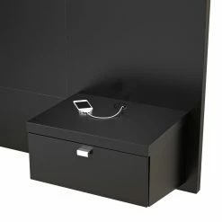- Textured black and medium oak finish