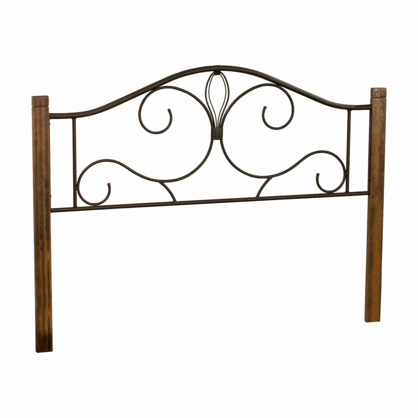 Create an elegant look for your bed with the Hillsdale Furniture Destin Decorative Headboard. Featuring an ornate scroll-style design with an arched silhouette, this headboard lends an element of sophistication to your bedroom dΓ©cor. Its heavy-gauge steel tubing provides ample durability, while two oak wood posts on either side hold the headboard in place. This headboard is offered in a choice of available sizes.